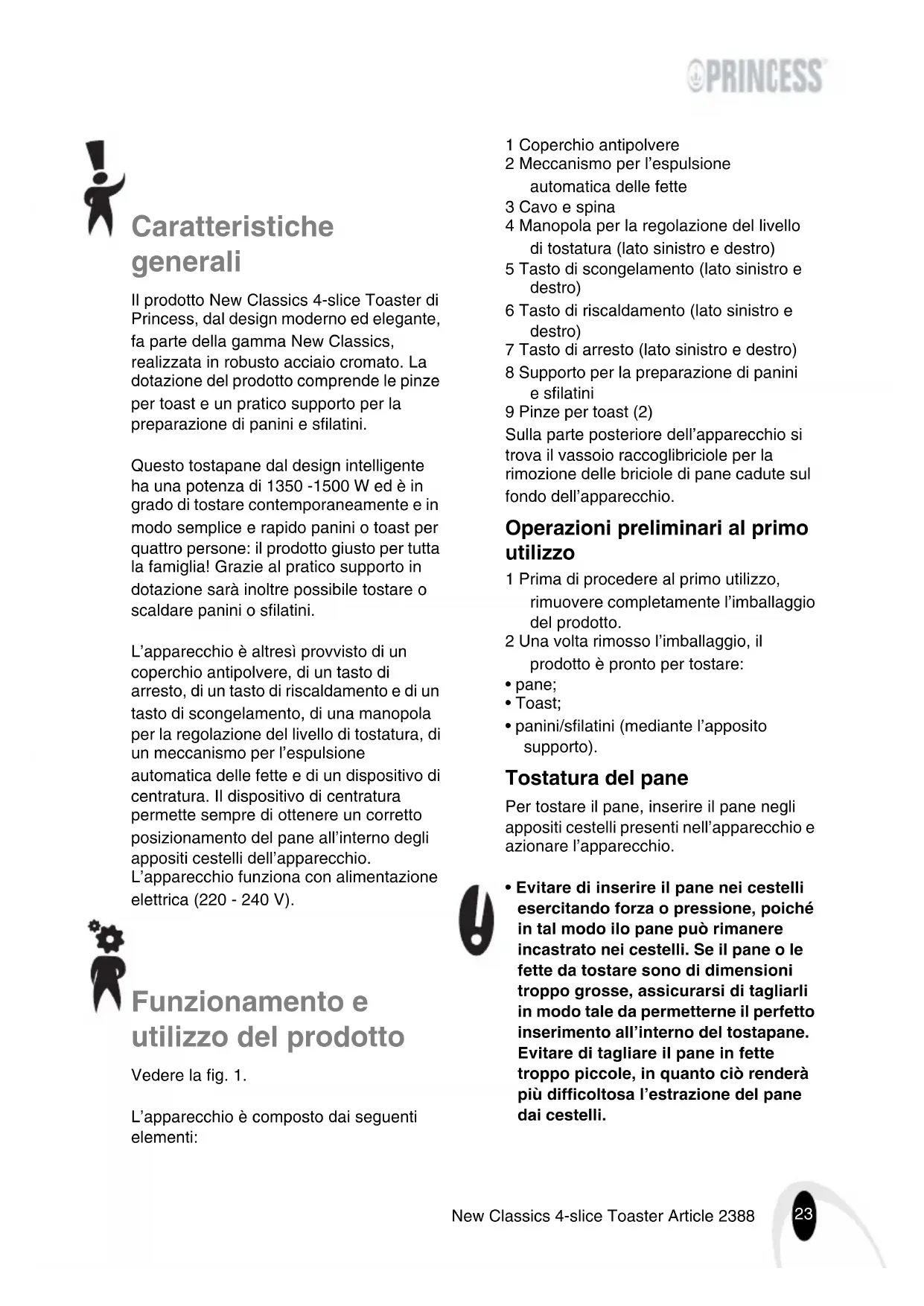 Scarica le istruzioni per il tuo Tostapane in formato PDF gratuitamente! Trova il tuo manuale 142388 - PRINCESS e riprendi in mano il tuo dispositivo elettronico. In questa pagina sono pubblicati tutti i documenti necessari per l'utilizzo del tuo dispositivo. 142388 del marchio PRINCESS.