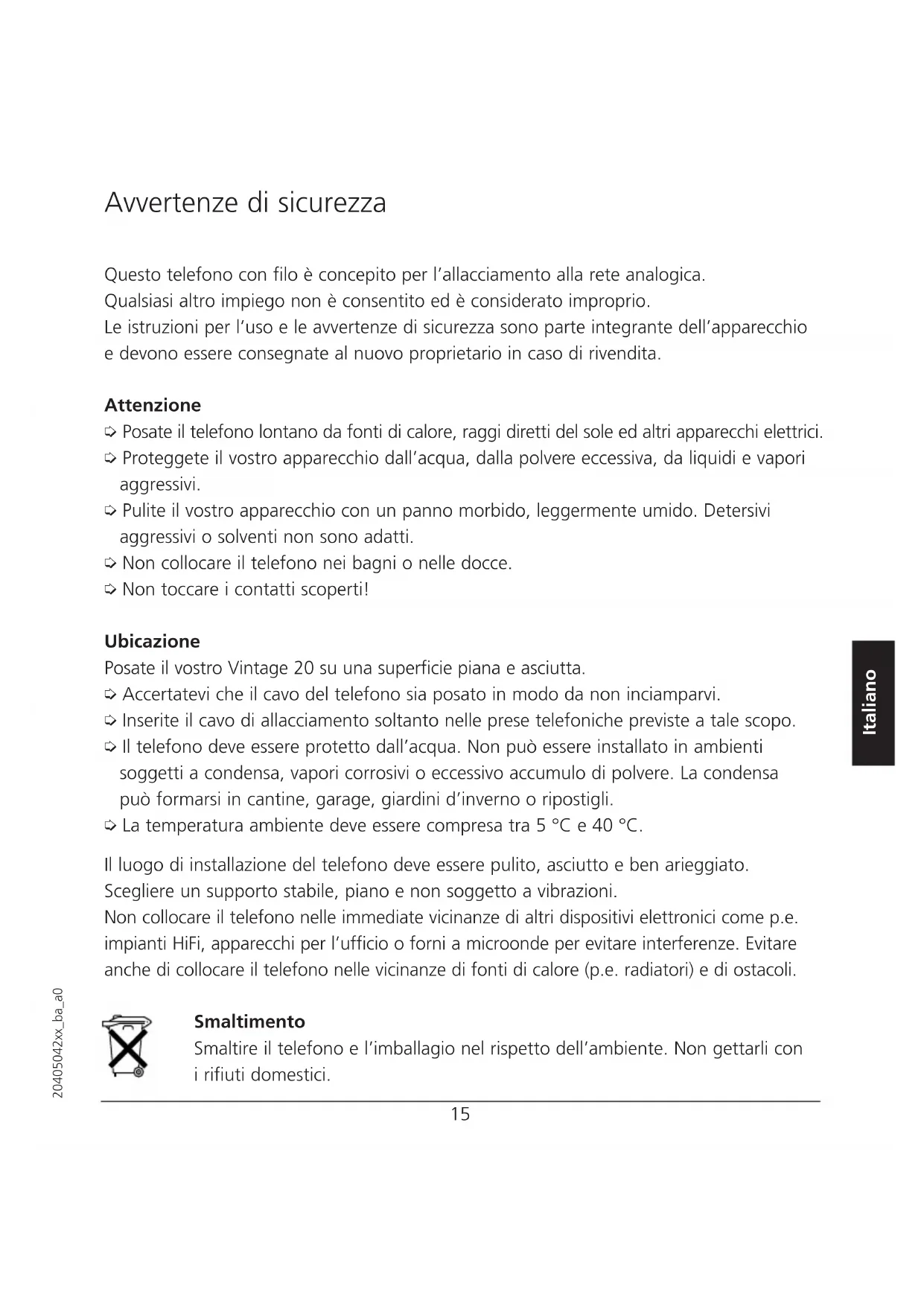 Scarica le istruzioni per il tuo Telefono in formato PDF gratuitamente! Trova il tuo manuale VINTAGE 20 - BRONDI e riprendi in mano il tuo dispositivo elettronico. In questa pagina sono pubblicati tutti i documenti necessari per l'utilizzo del tuo dispositivo. VINTAGE 20 del marchio BRONDI.