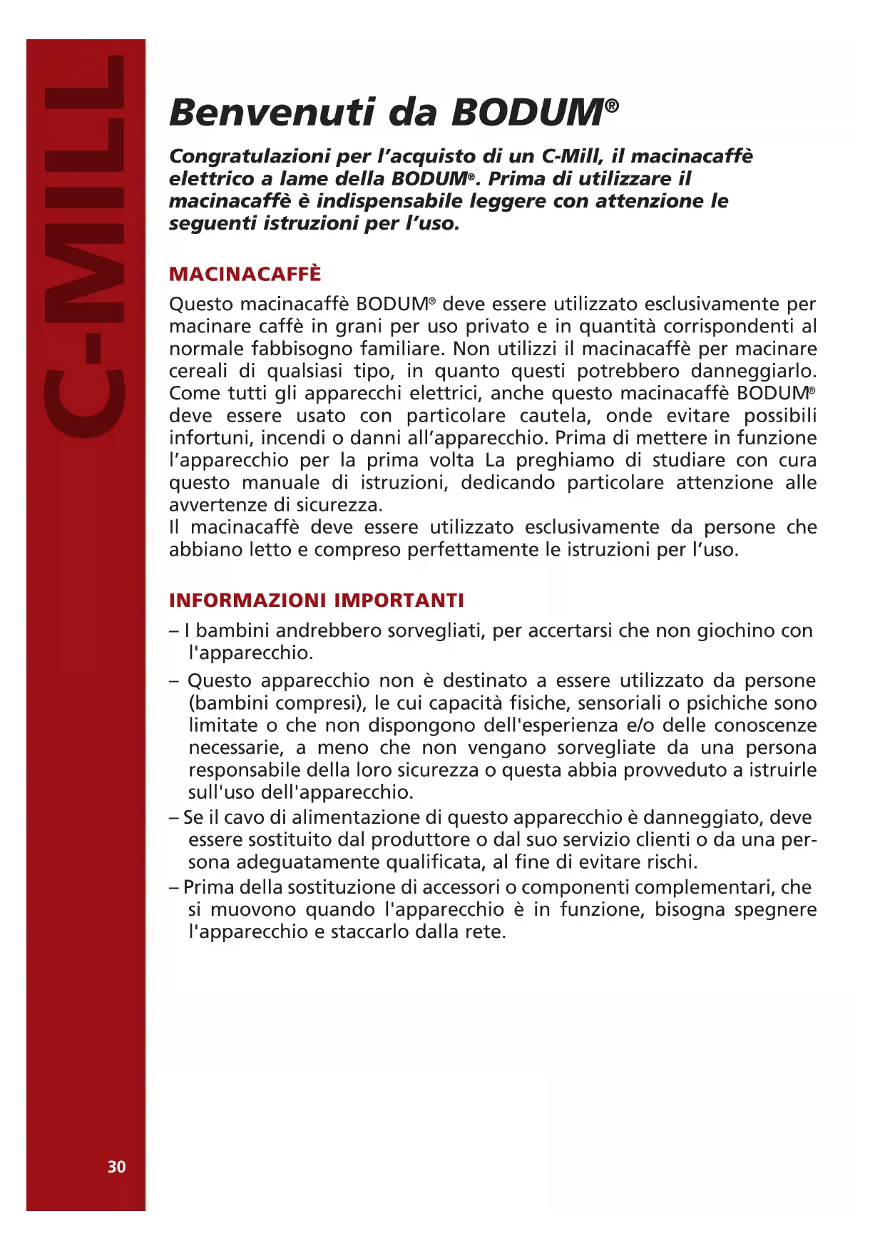 Congratulazioni per l’acquisto di un C-Mill, il macinacaffè elettrico a lame della BODUM