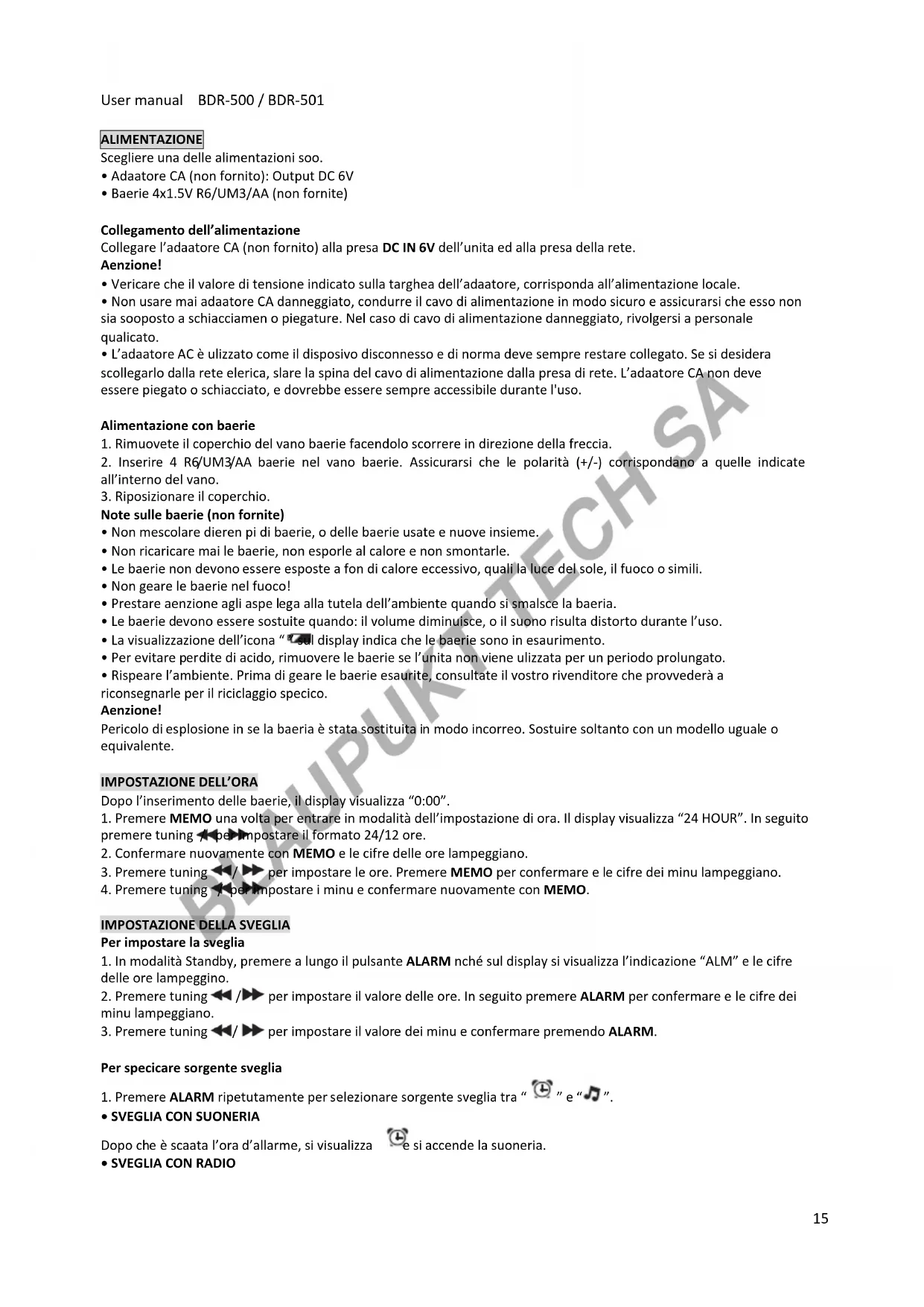 • SVEGLIA CON RADIO BLAUPUKT TECH SAUser manual BDR-500 / BDR-501