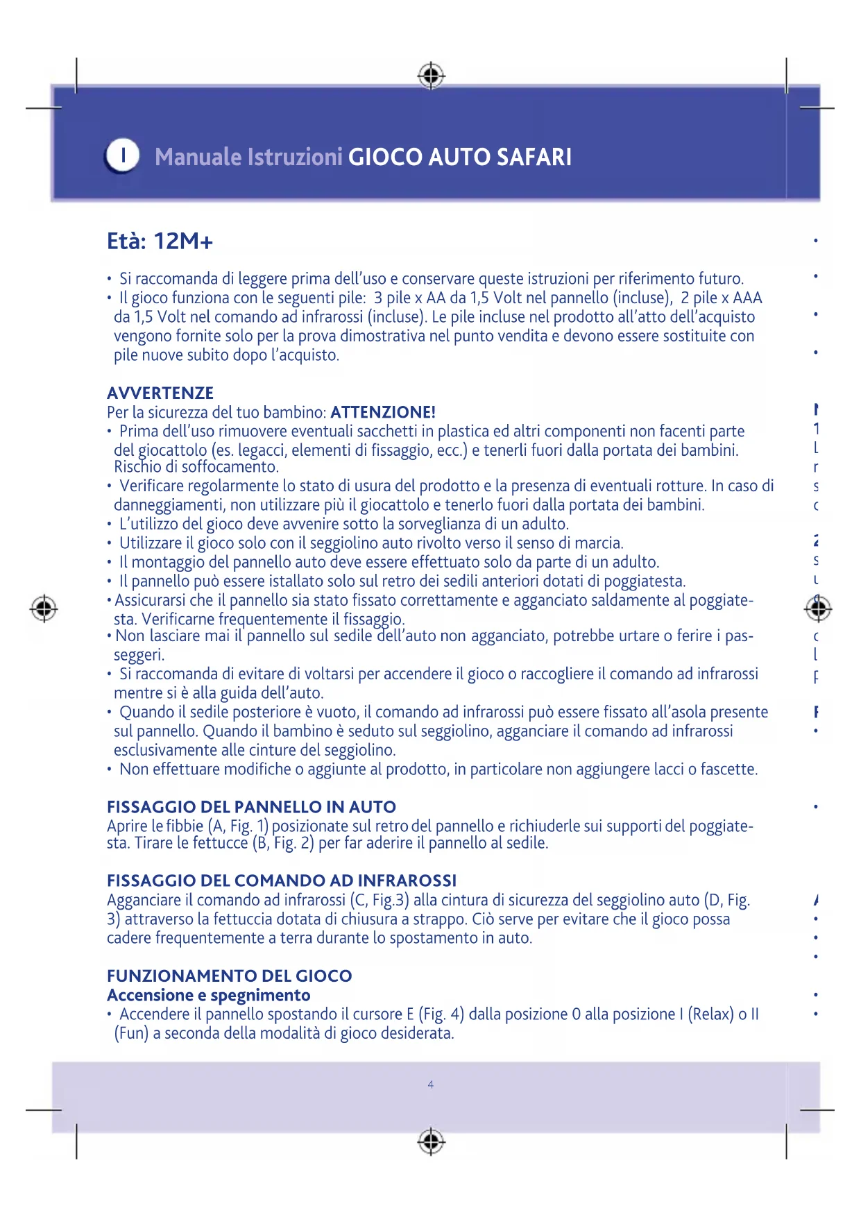 Manuale Istruzioni GIOCO AUTO SAFARI I Età: 12M+