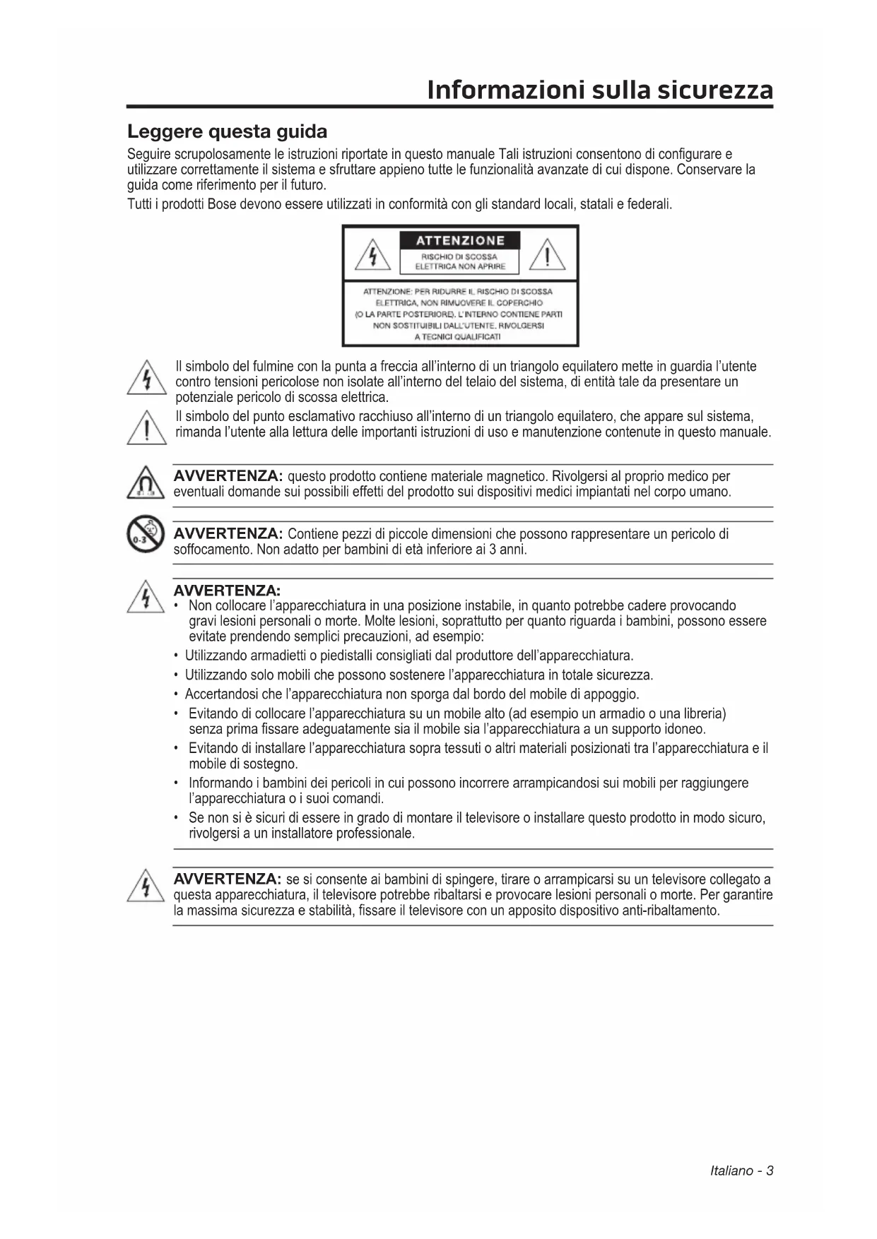 Tutti i prodotti Bose devono essere utilizzati in conformità con gli standard locali, statali e federali.