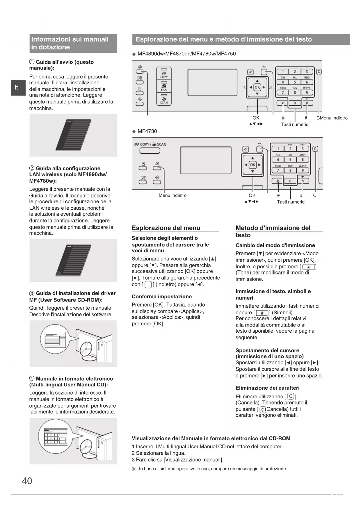 Esplorazione del menu e metodo d'immissione del testo ● MF4890dw/MF4870dn/MF4780w/MF4750