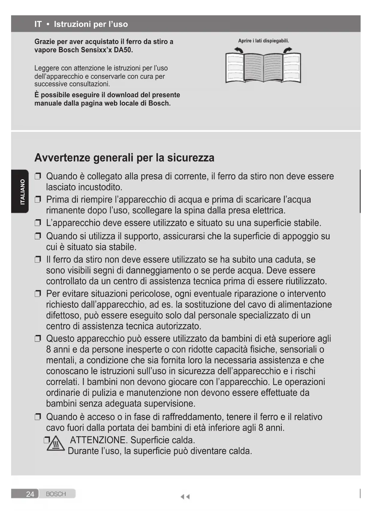 manuale dalla pagina web locale di Bosch. Aprire i lati dispiegabili.25