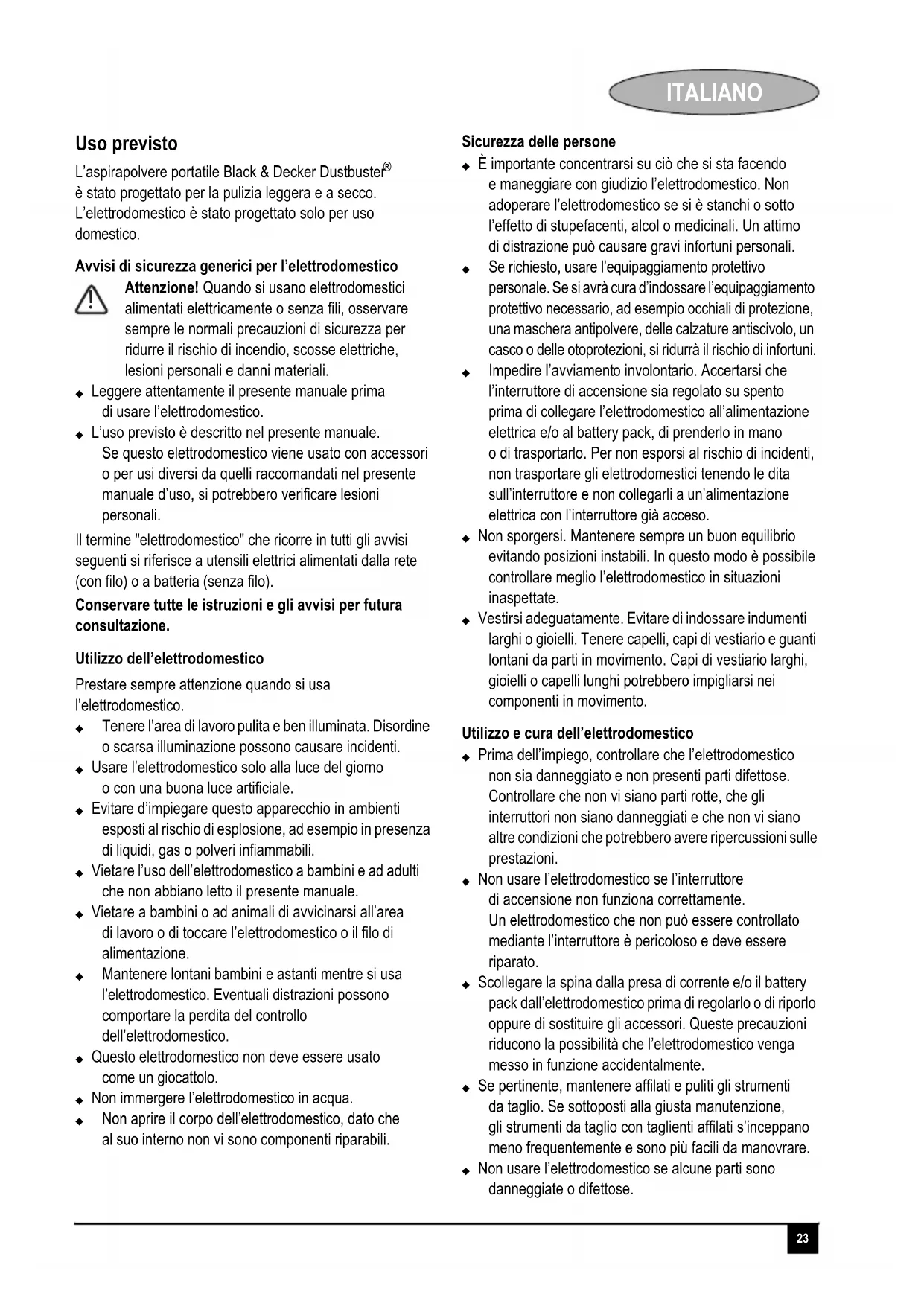 Scarica le istruzioni per il tuo Aspirapolvere in formato PDF gratuitamente! Trova il tuo manuale PV9605N - BLACK & DECKER e riprendi in mano il tuo dispositivo elettronico. In questa pagina sono pubblicati tutti i documenti necessari per l'utilizzo del tuo dispositivo. PV9605N del marchio BLACK & DECKER.