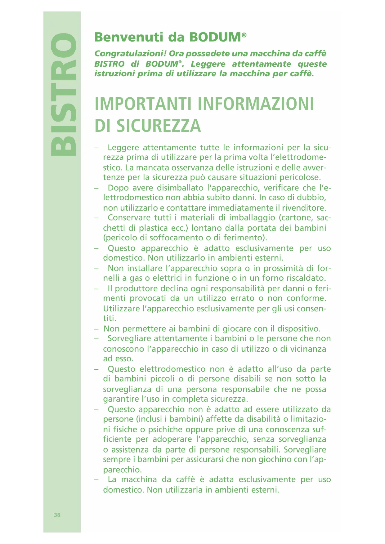 Congratulazioni! Ora possedete una macchina da caffè BISTRO di BODUM