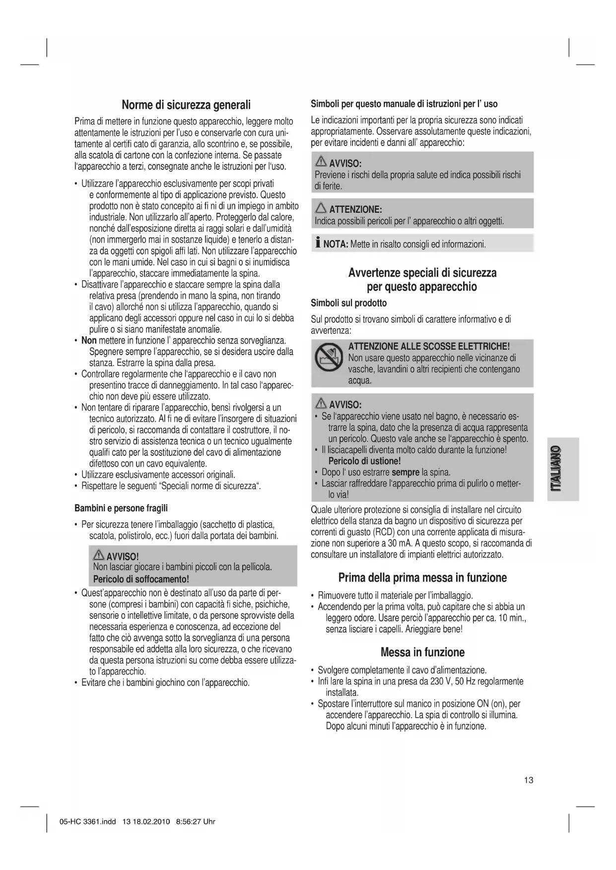• Utilizzare l’apparecchio esclusivamente per capelli asciutti.