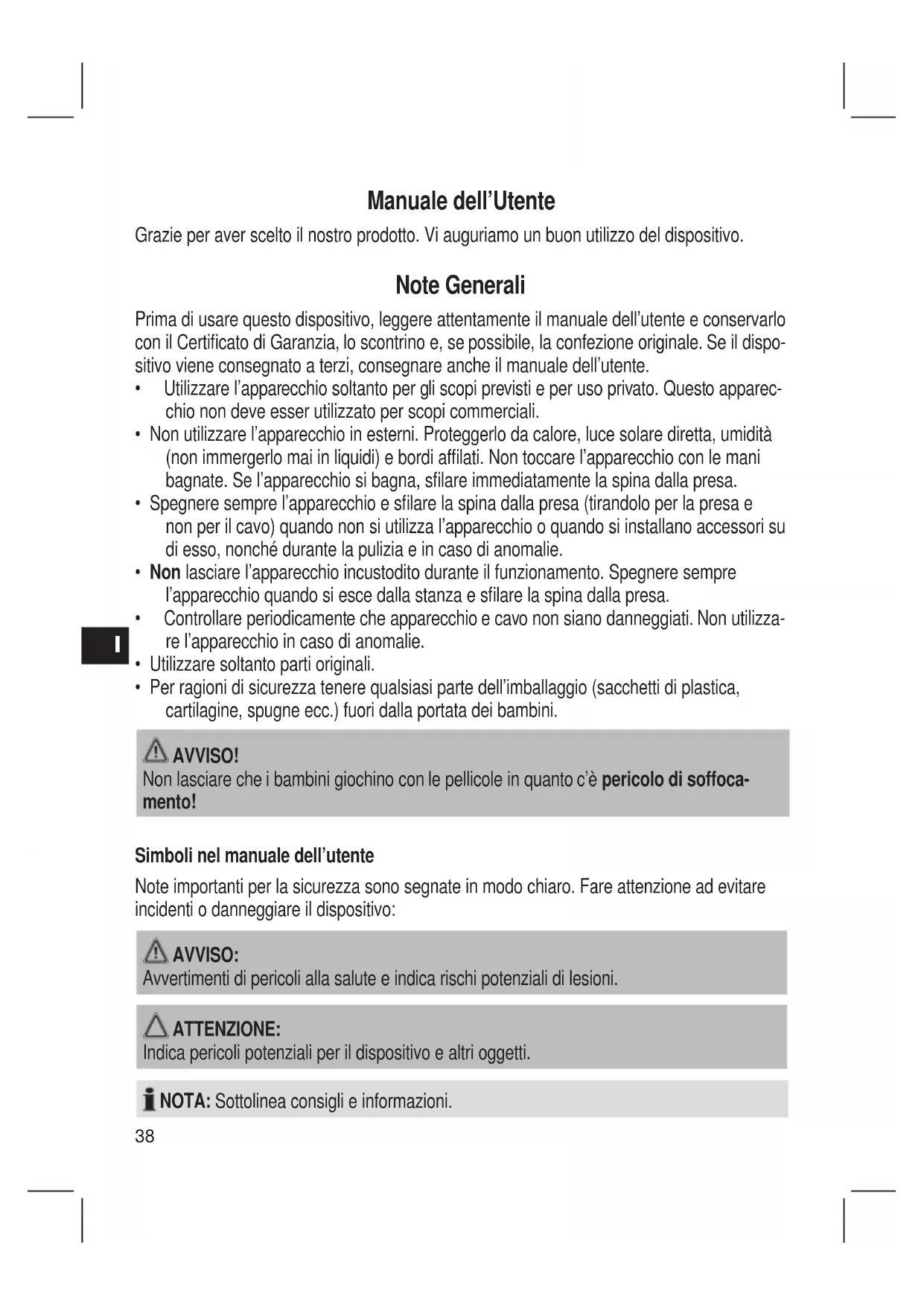 Manuale dell’Utente Grazie per aver scelto il nostro prodotto. Vi auguriamo un buon utilizzo del dispositivo. Note Generali Prima di usare questo dispositivo, leggere attentamente il manuale dell’utente e conservarlo con il Certicato di Garanzia, lo scontrino e, se possibile, la confezione originale. Se il dispo- sitivo viene consegnato a terzi, consegnare anche il manuale dell’utente.