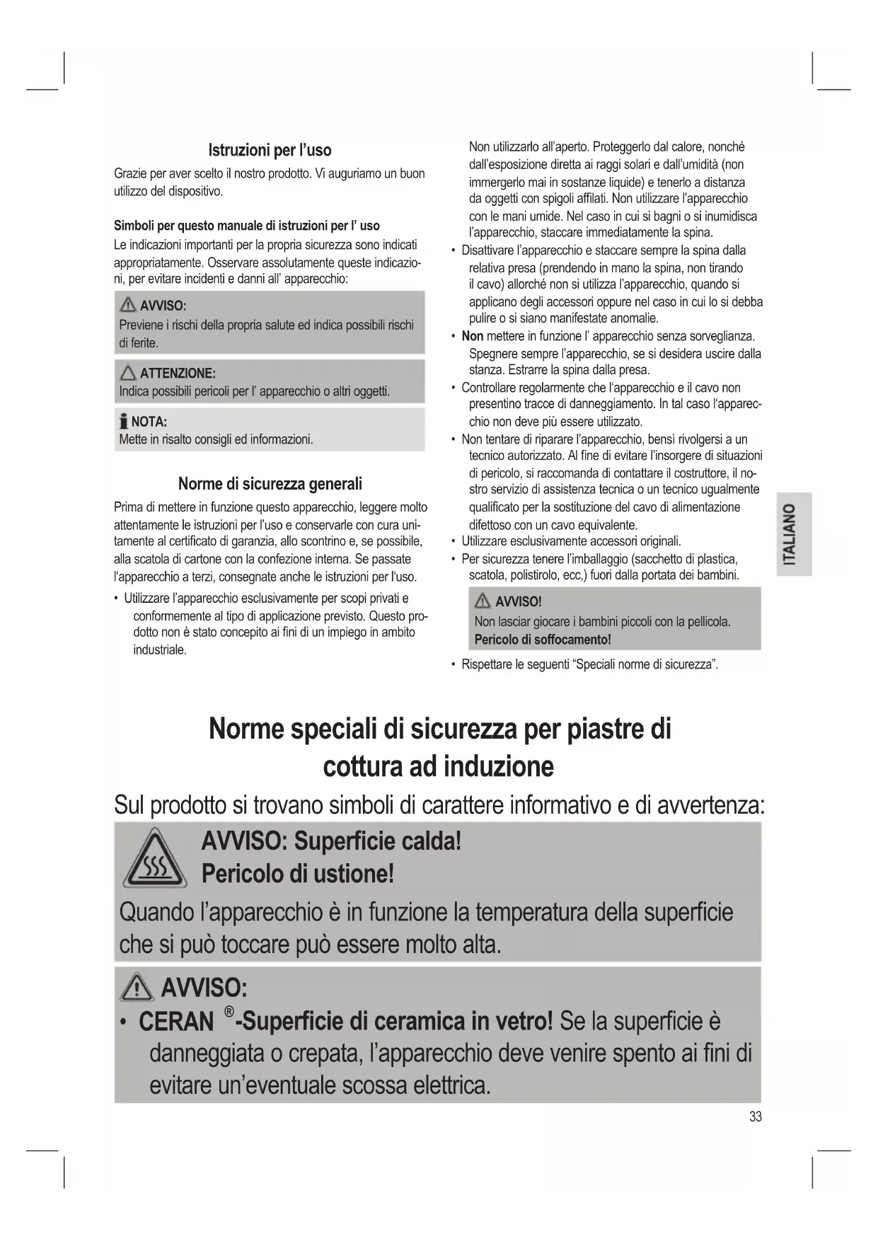 • Calore da induzione! Si consiglia di non posare oggetti in metal-