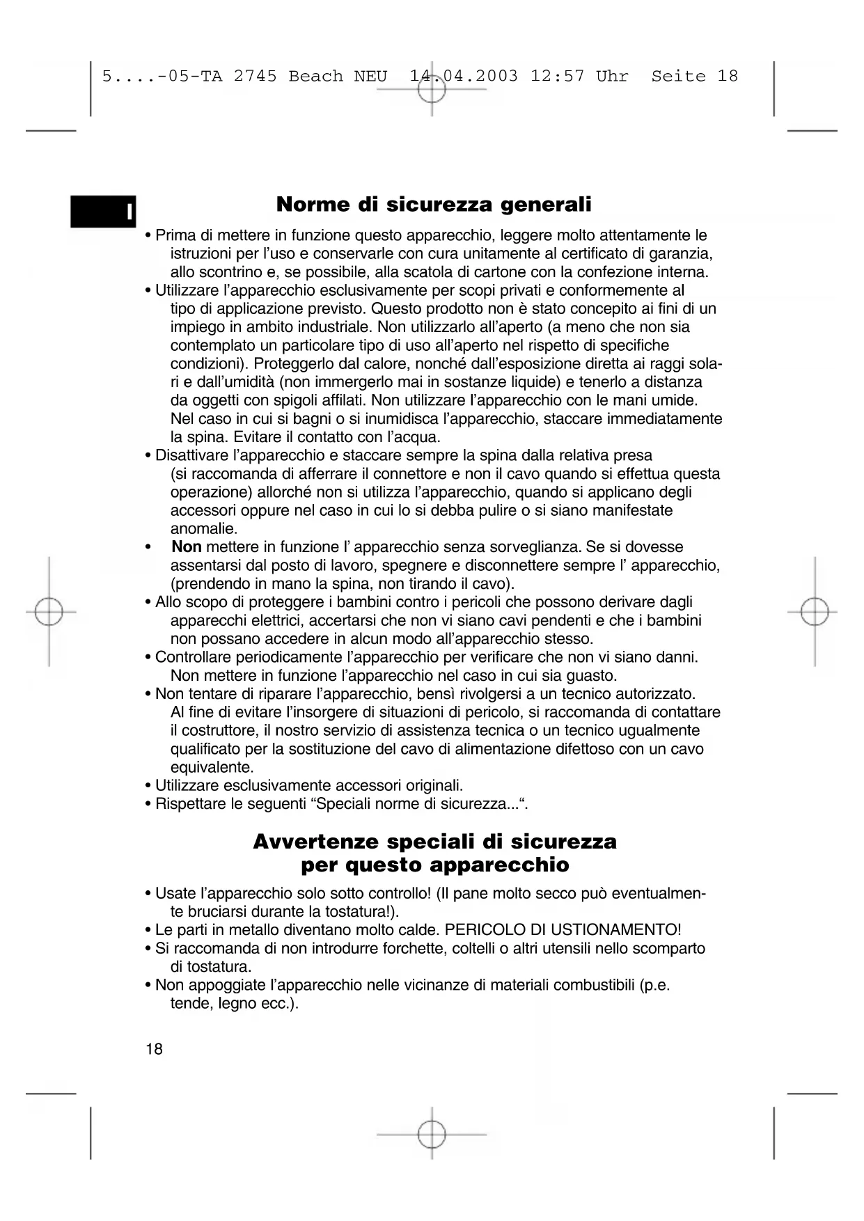 - Usate l'apparecchio solo sotto controlo! (Il pane molto secco può eventualmente bruciarsi durante la tostatura!).