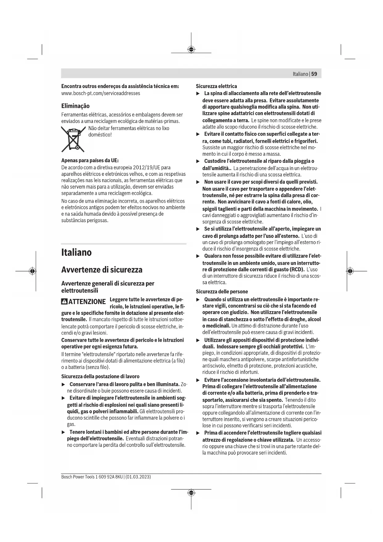 la macchina può provocare seri incidenti. Bosch Power Tools 1 609 92A 8KU | (01.03.2023)60 | Italiano
