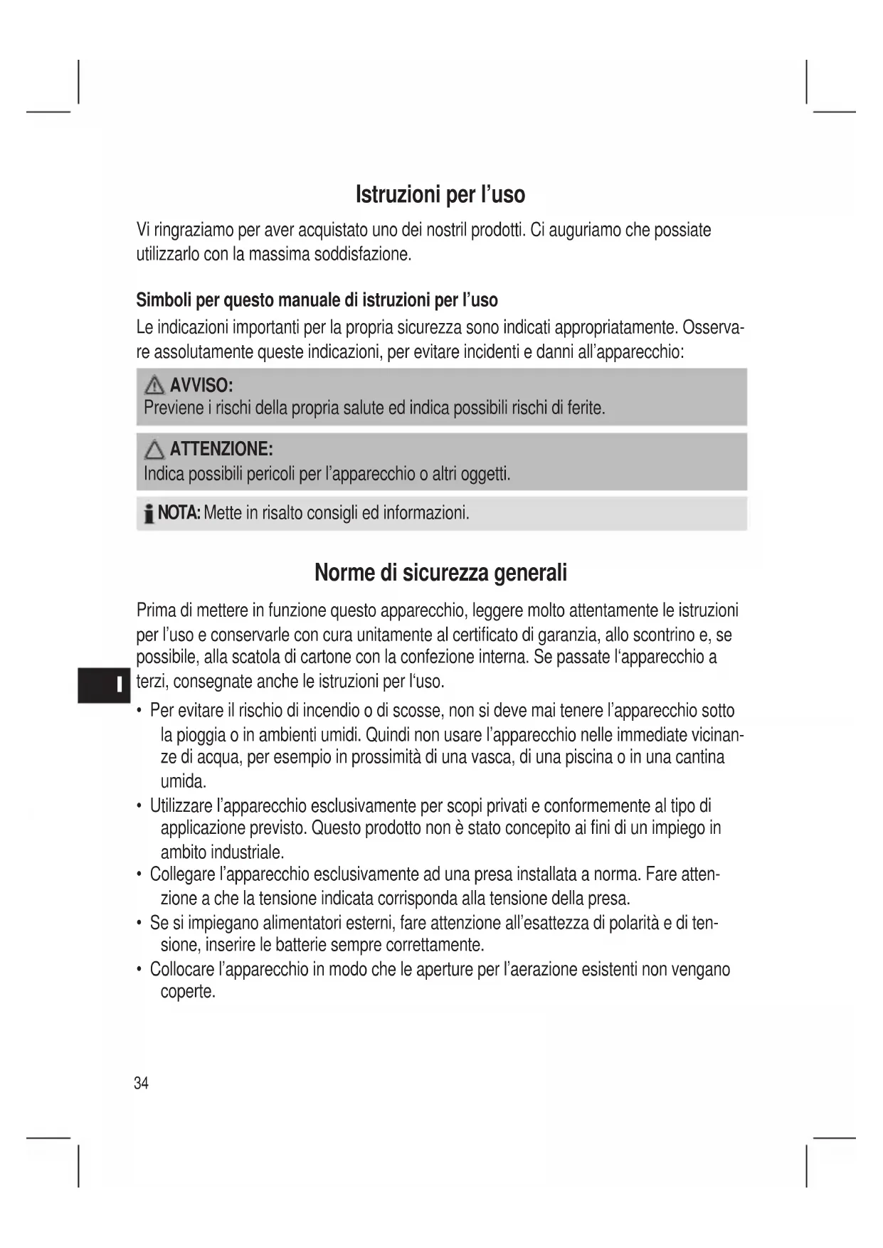• Se si impiegano alimentatori esterni, fare attenzione all’esattezza di polarità e di ten-