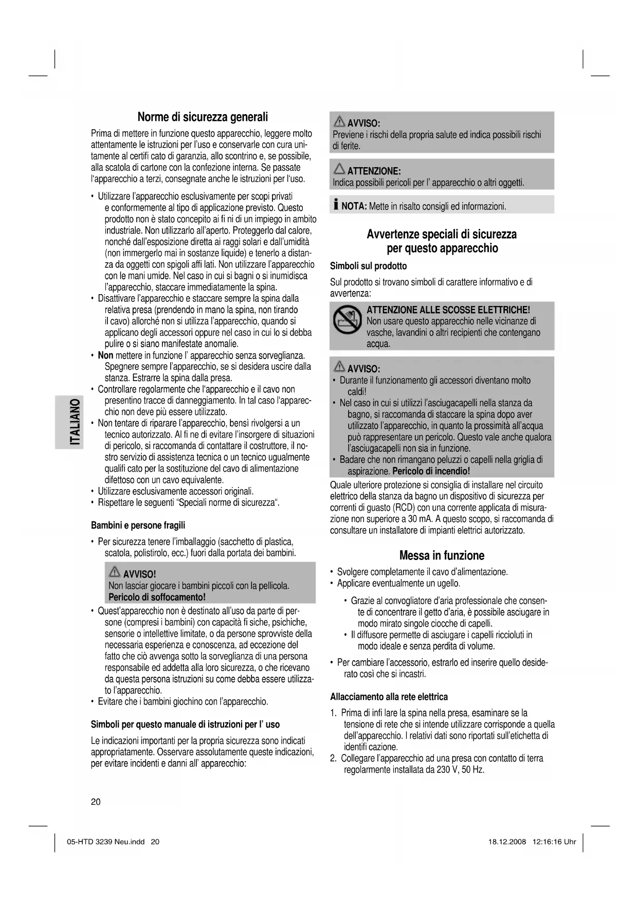 ITALIANO ITALIANO Norme di sicurezza generali