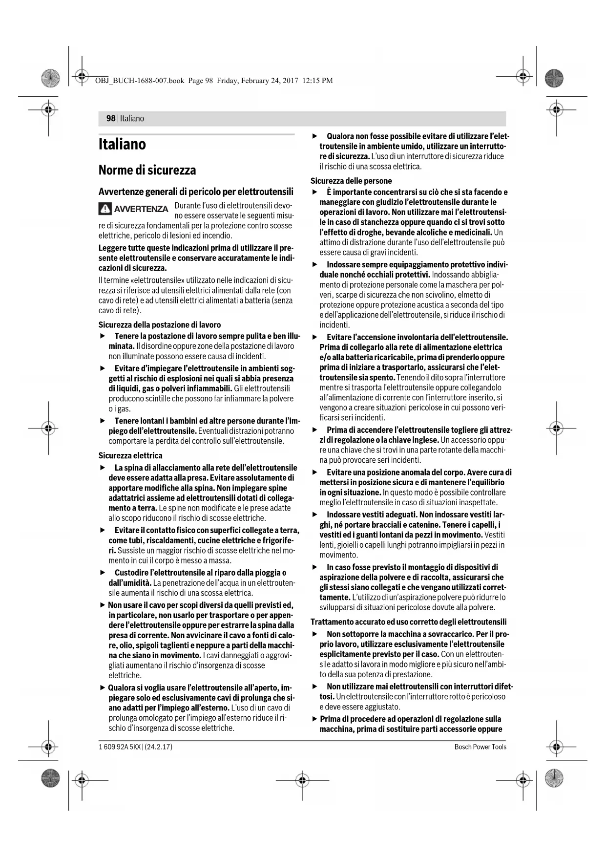 Trattamento accurato ed uso corretto degli elettroutensili