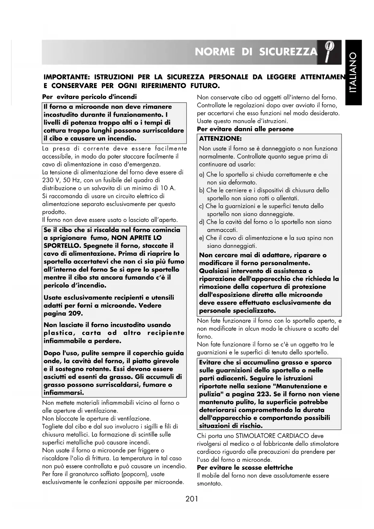 Chi porta uno STIMOLATORE CARDIACO delve rivolgersi al medico o al fabbricante dello stimolatore cardiaco riguardo alle precauzioni da prendere per l'uso delorno a microonde.