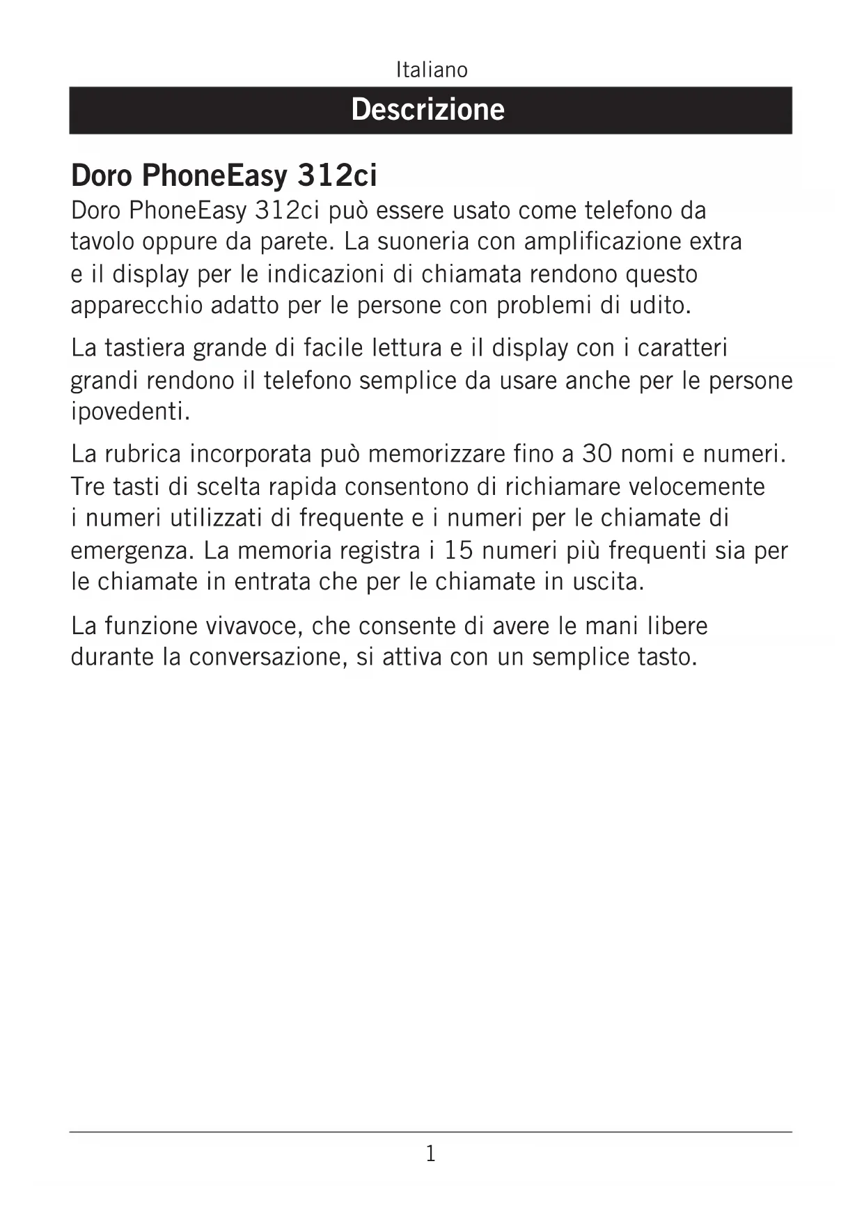 MANUALE UTENTE PhoneEasy 312ci DORO