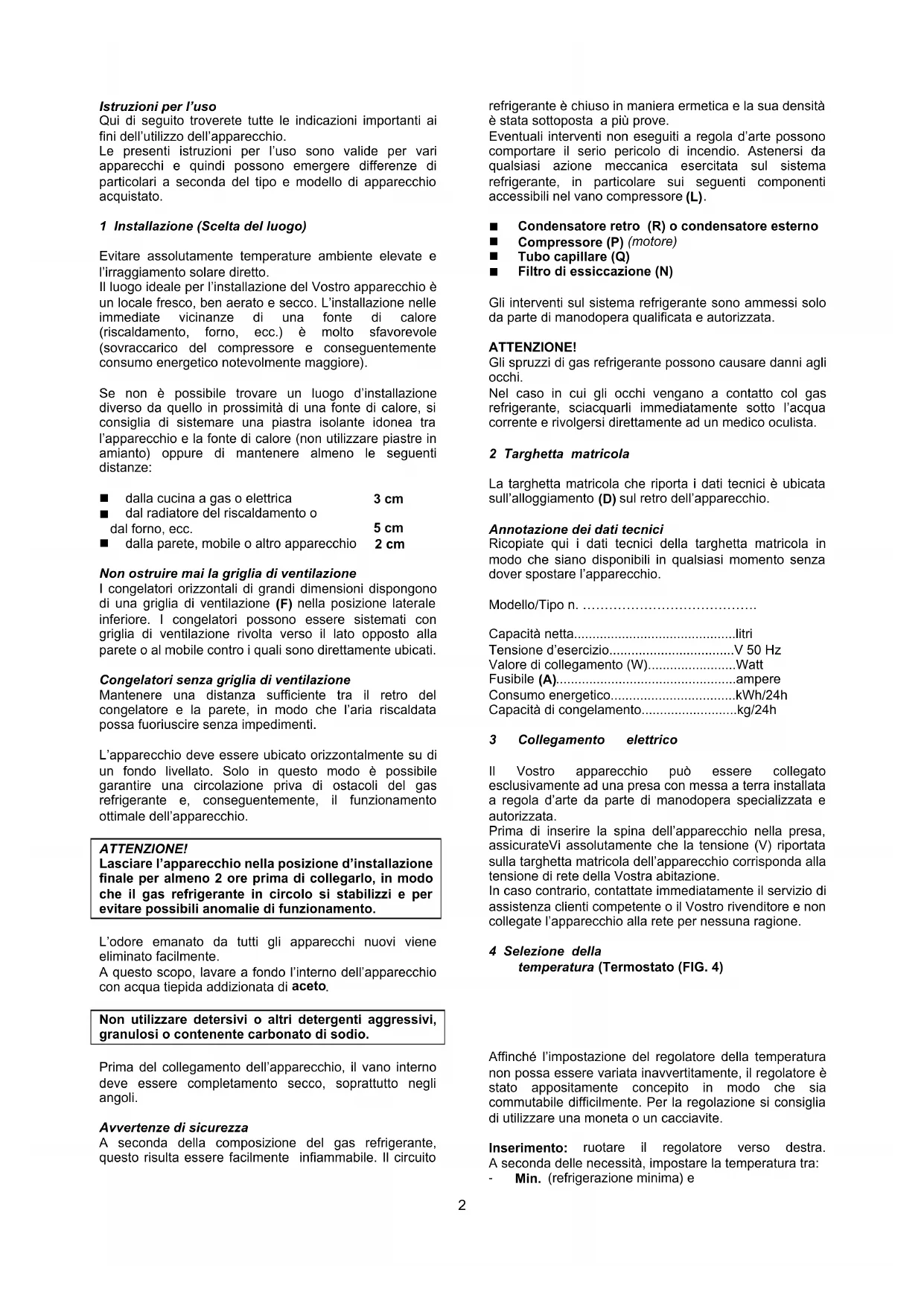 Prima del collegamento dell’apparecchio, il vano interno