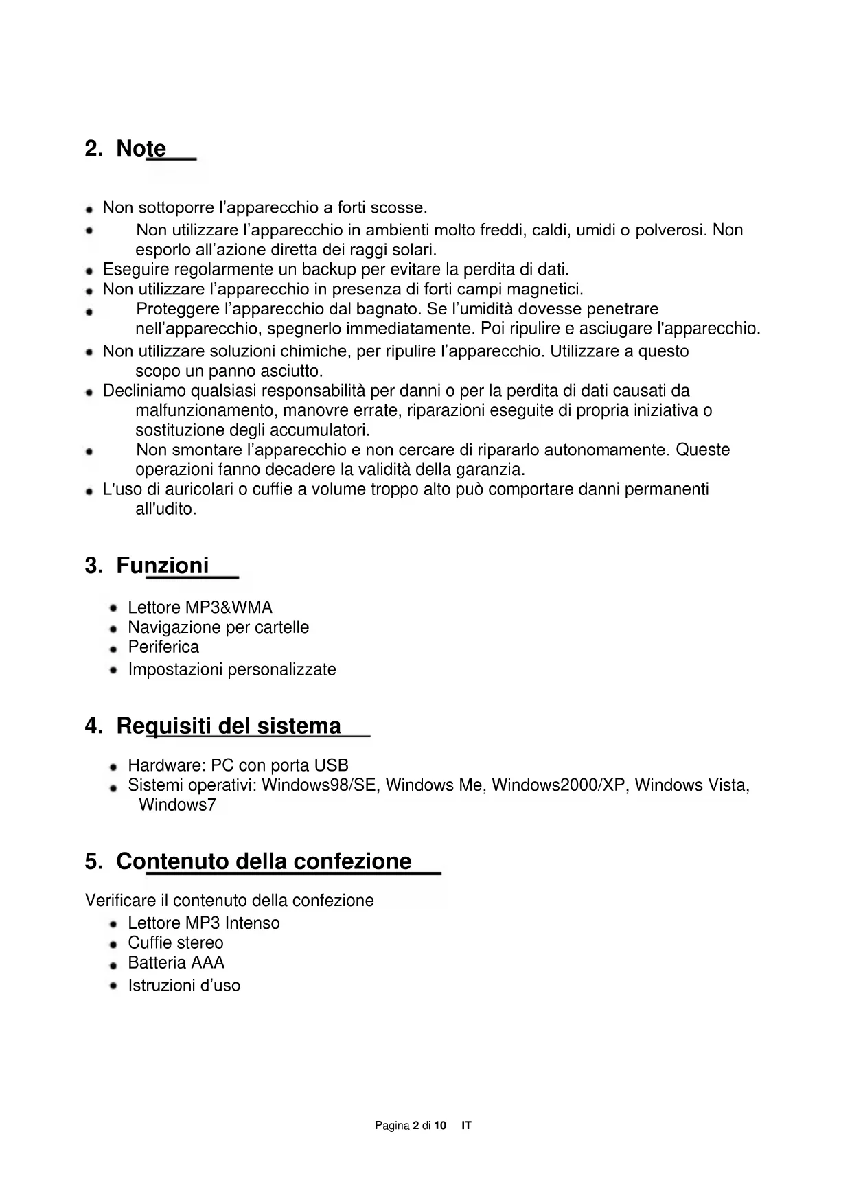 Scarica le istruzioni per il tuo Lettore mp3 in formato PDF gratuitamente! Trova il tuo manuale Musik Walker - INTENSO e riprendi in mano il tuo dispositivo elettronico. In questa pagina sono pubblicati tutti i documenti necessari per l'utilizzo del tuo dispositivo. Musik Walker del marchio INTENSO.