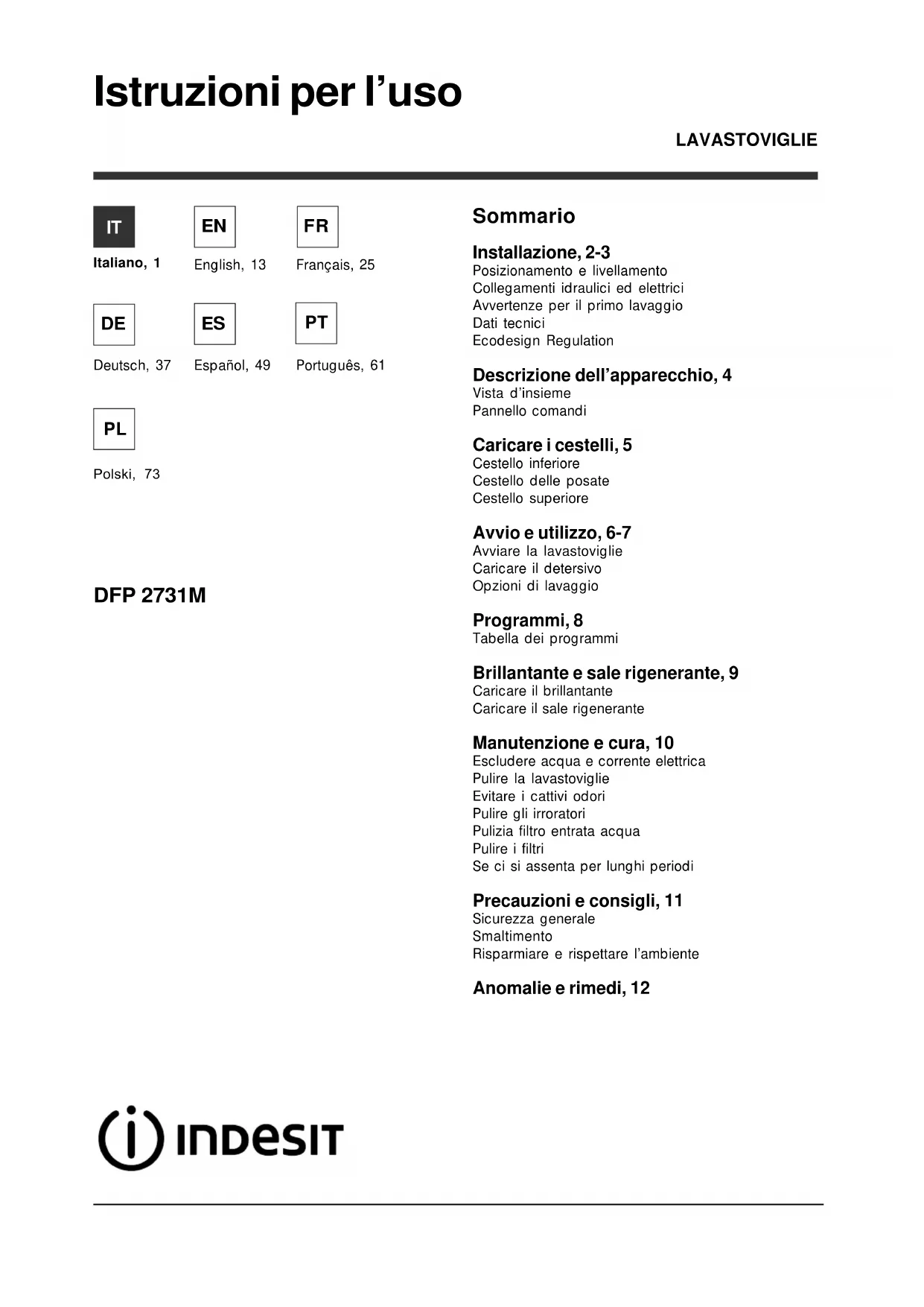 Scarica le istruzioni per il tuo Lavastoviglie in formato PDF gratuitamente! Trova il tuo manuale DFP 2731M NX EU - INDESIT e riprendi in mano il tuo dispositivo elettronico. In questa pagina sono pubblicati tutti i documenti necessari per l'utilizzo del tuo dispositivo. DFP 2731M NX EU del marchio INDESIT.