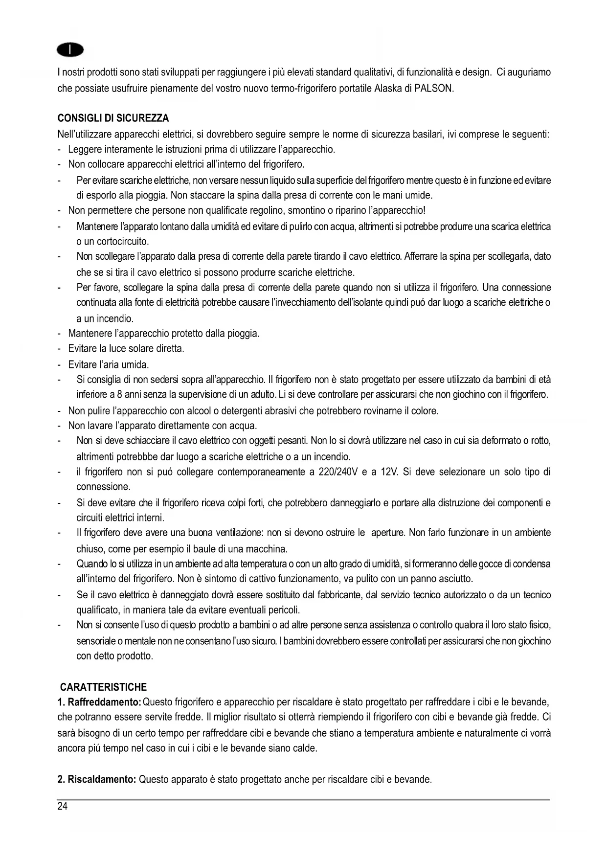 I nostri prodotti sono stati sviluppati per raggiungere i più elevati standard qualitativi, di funzionalità e design. Ci auguriamo che possiate usfuquire pienamente del vostro nuovo termo-frigorifero portatile Alaska di PALSON.