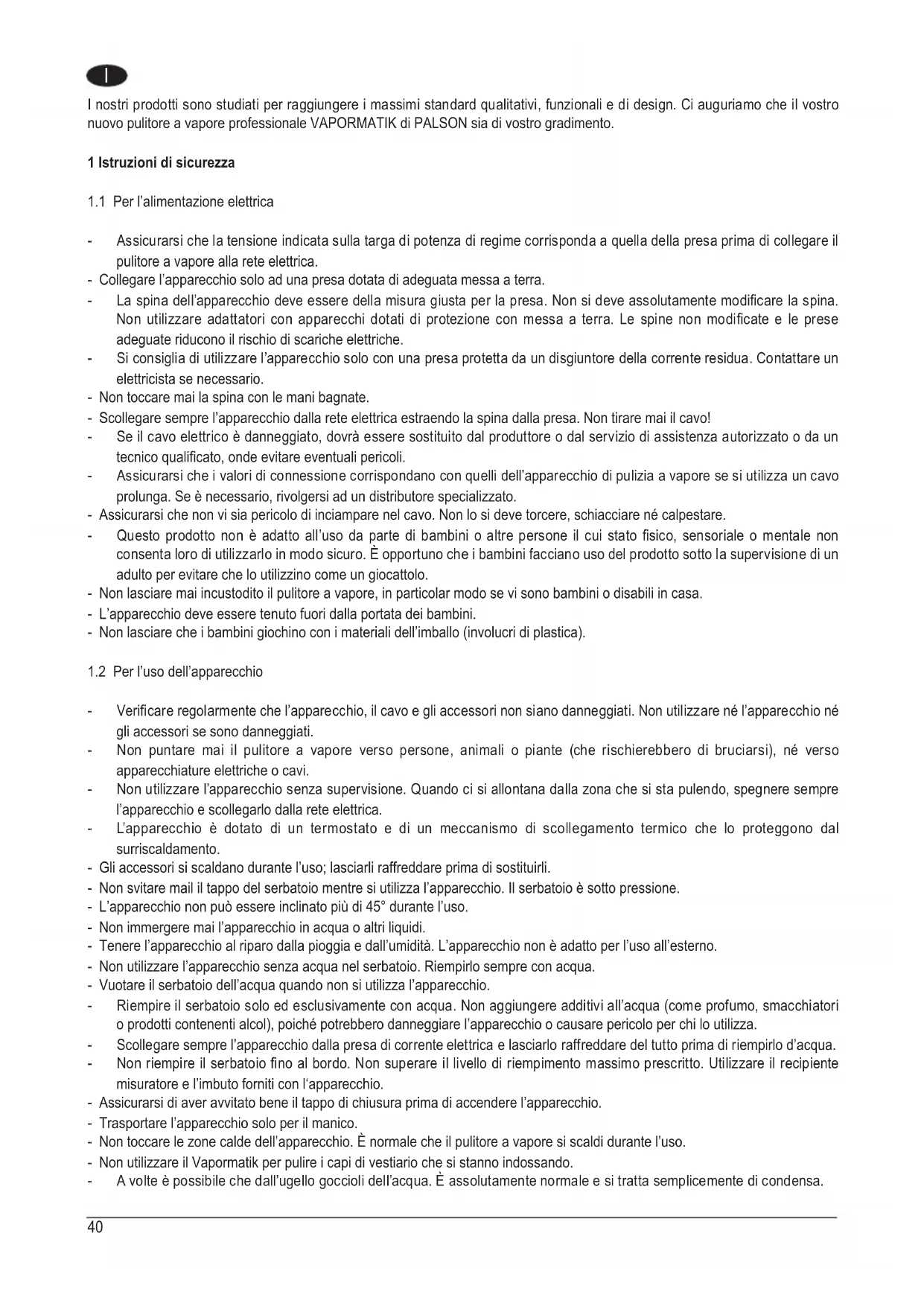 1 Istruzioni di sicurezza