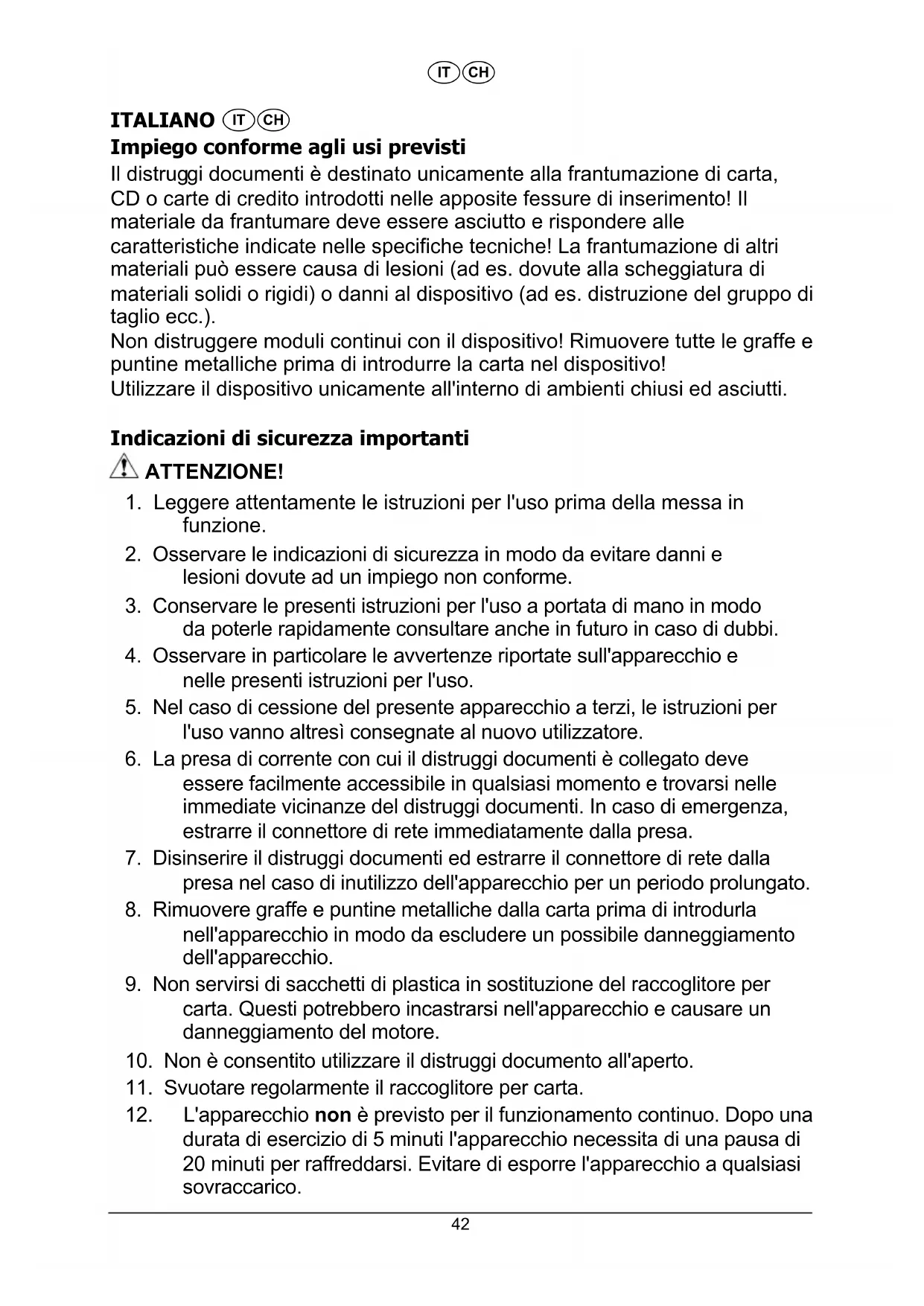 Il presente apparecchio è in grado di frantumare massimo 12 fogli (70g/m