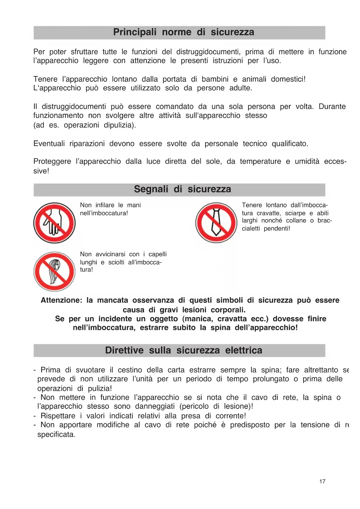 16Per poter sfruttare tutte le funzioni del distruggidocumenti, prima di mettere in funzione