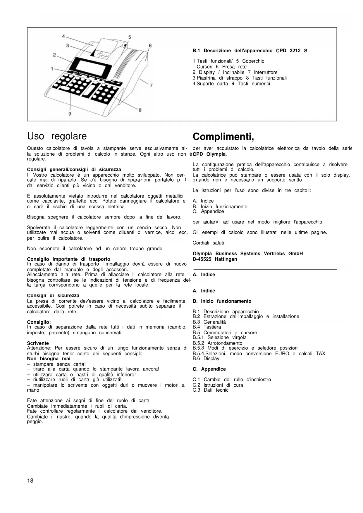 Scarica le istruzioni per il tuo Calcolatrice in formato PDF gratuitamente! Trova il tuo manuale CPD 3212 S - OLYMPIA e riprendi in mano il tuo dispositivo elettronico. In questa pagina sono pubblicati tutti i documenti necessari per l'utilizzo del tuo dispositivo. CPD 3212 S del marchio OLYMPIA.