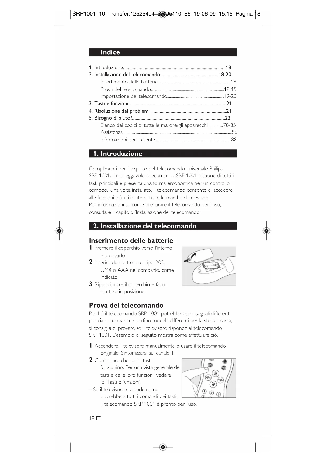 18 IT SRP1001_10_Transfer:125254c4_SRU5110_86 19-06-09 15:15 Pagina 18• Se il dispositivo non risponde per niente o non risponde