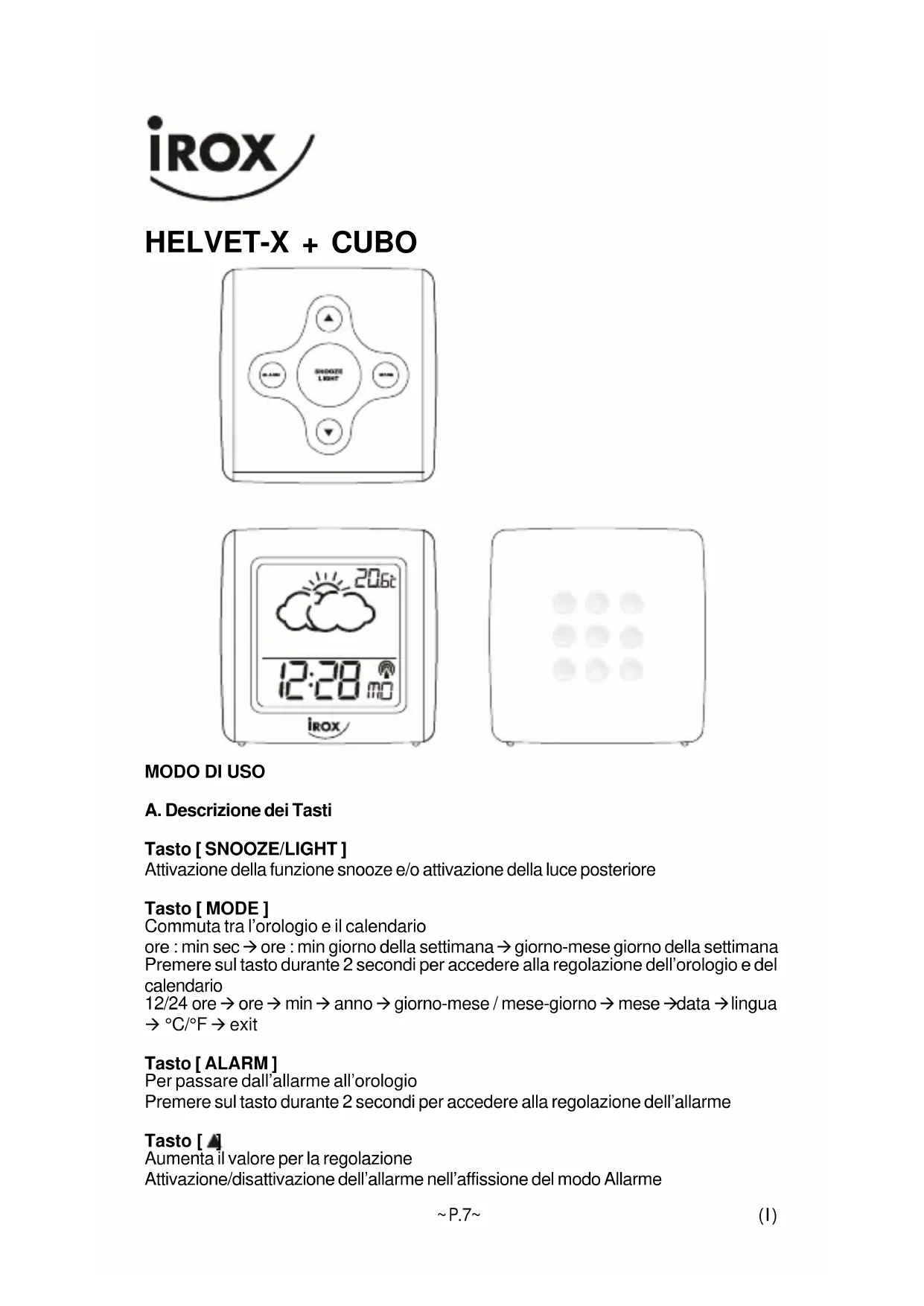 CUBOS - Radio sveglia IROX - Manuale utente e istruzioni gratuiti