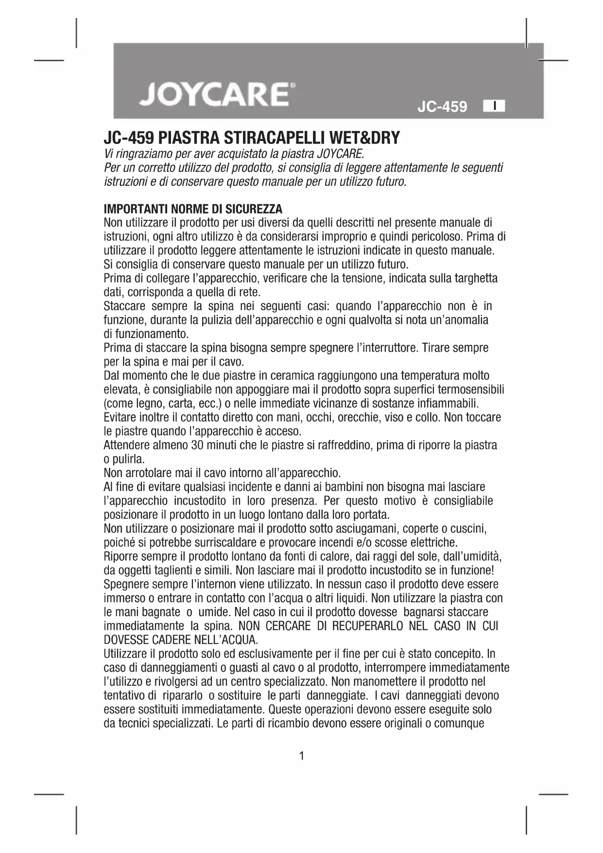 MANUALE UTENTE JC459 Joycare