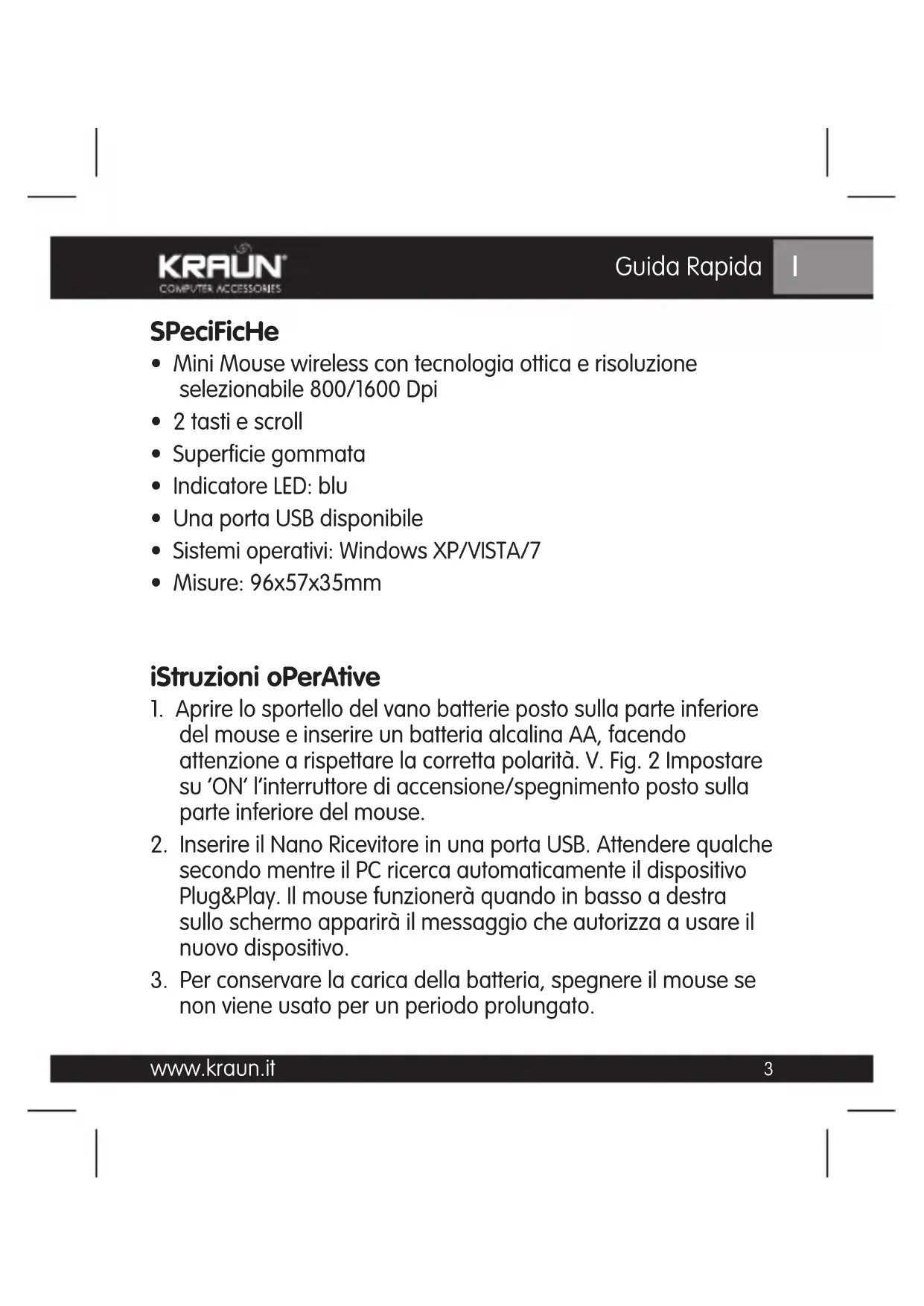 Scarica le istruzioni per il tuo Mouse in formato PDF gratuitamente! Trova il tuo manuale Black Stone - Kraun e riprendi in mano il tuo dispositivo elettronico. In questa pagina sono pubblicati tutti i documenti necessari per l'utilizzo del tuo dispositivo. Black Stone del marchio Kraun.