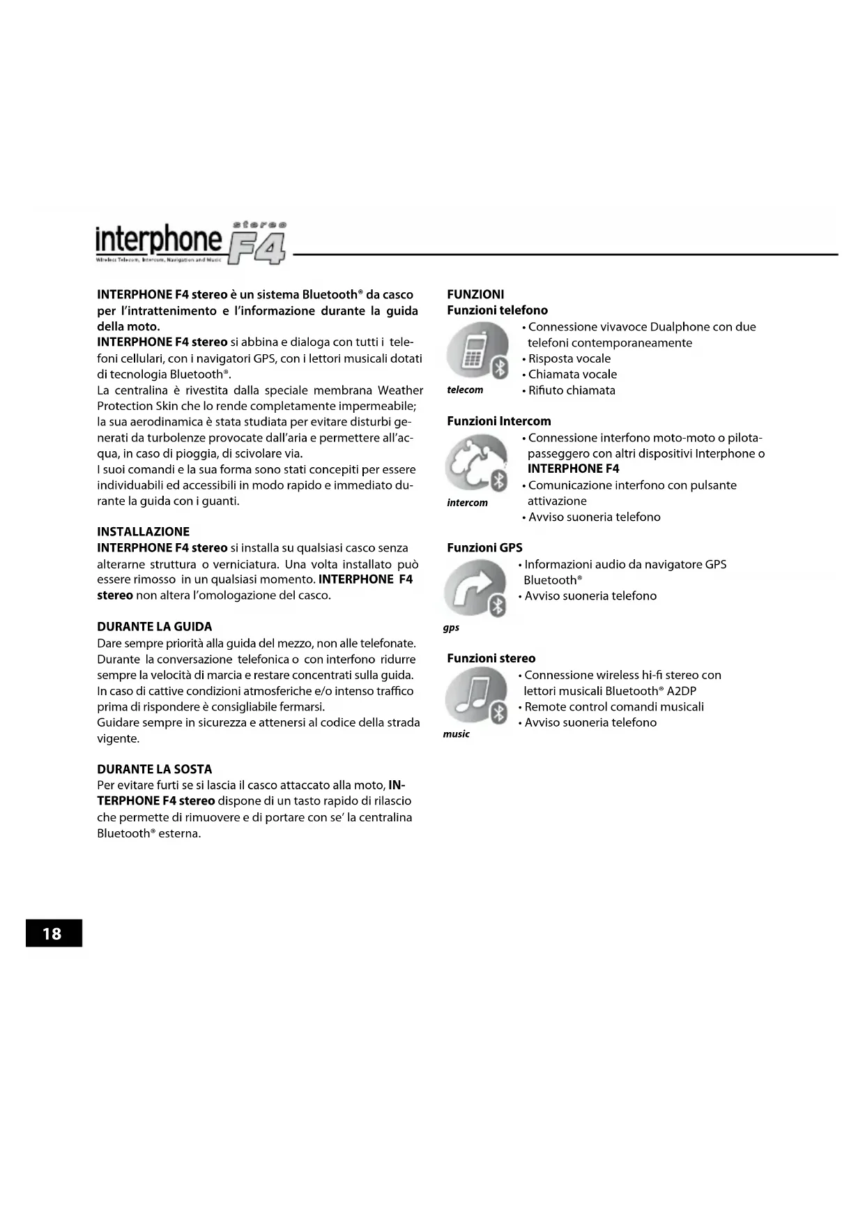 INTERPHONE F4 stereo si abbina e dialoga con tutti i telefoni cellulari, con i navigatori GPS, con ilettori musicali dotati di technologia Bluetooth.