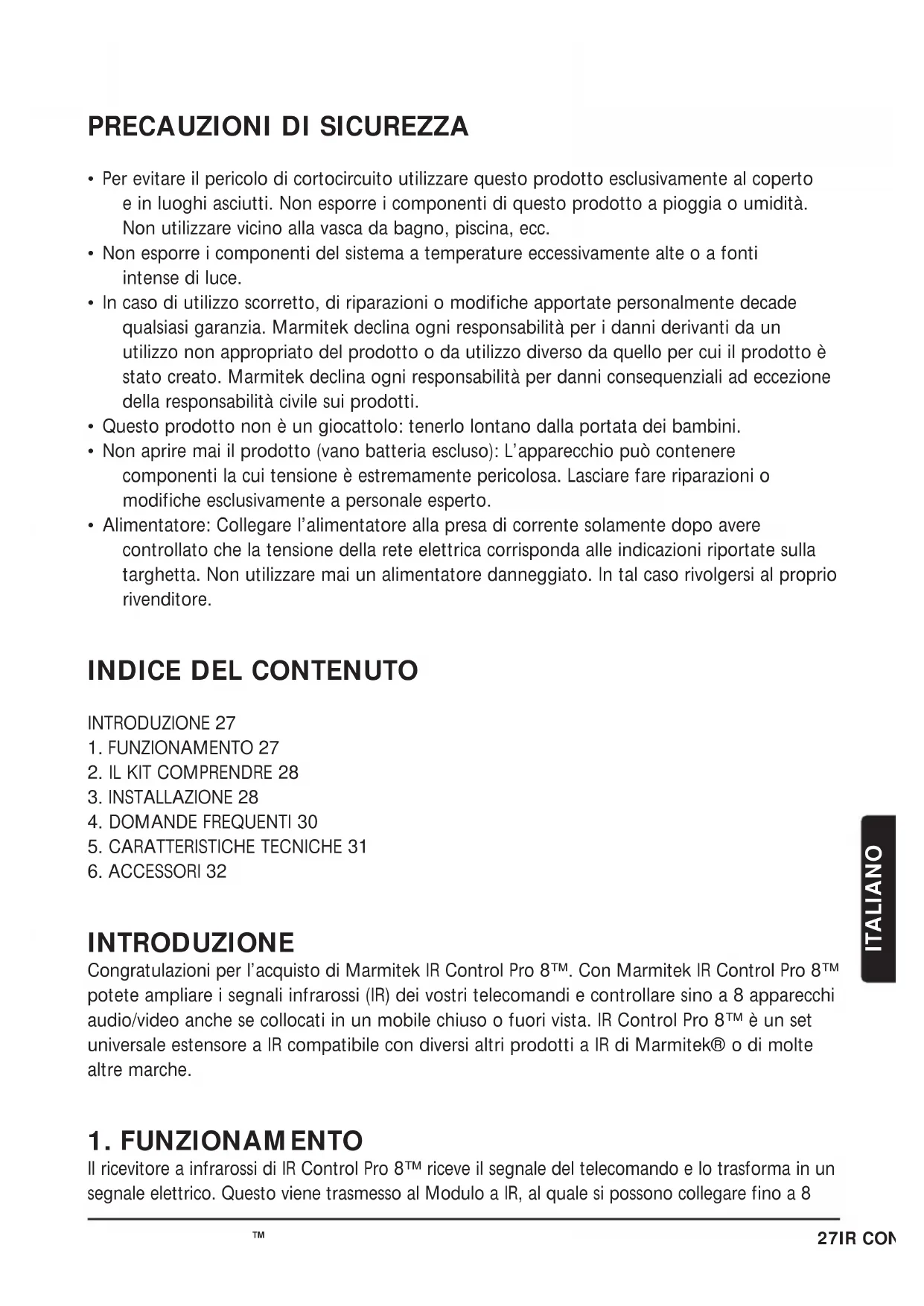 IR Control Pro 8 - Ricevitore MARMITEK - Manuale utente e istruzioni gratuiti