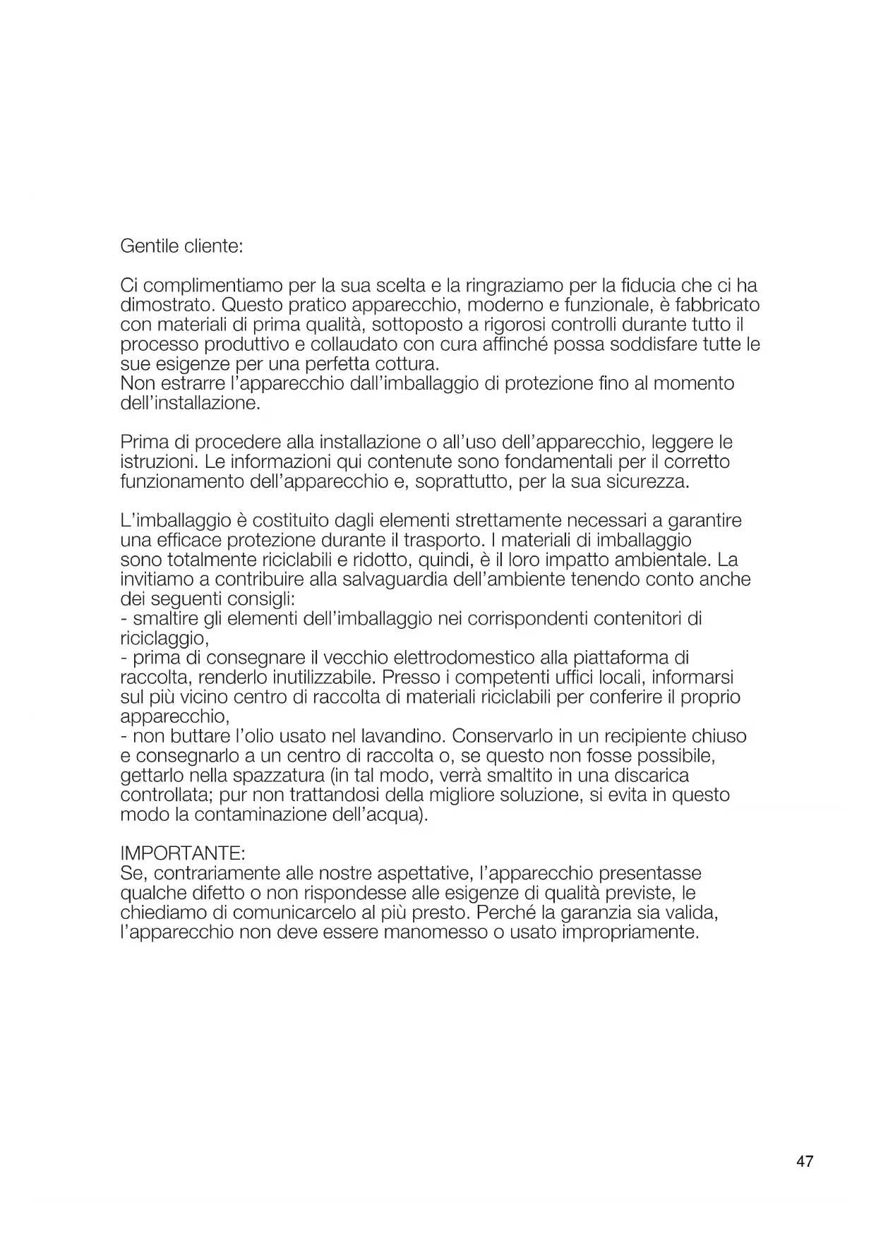 Prima di procedere alla installazione o all’uso dell’apparecchio, leggere le