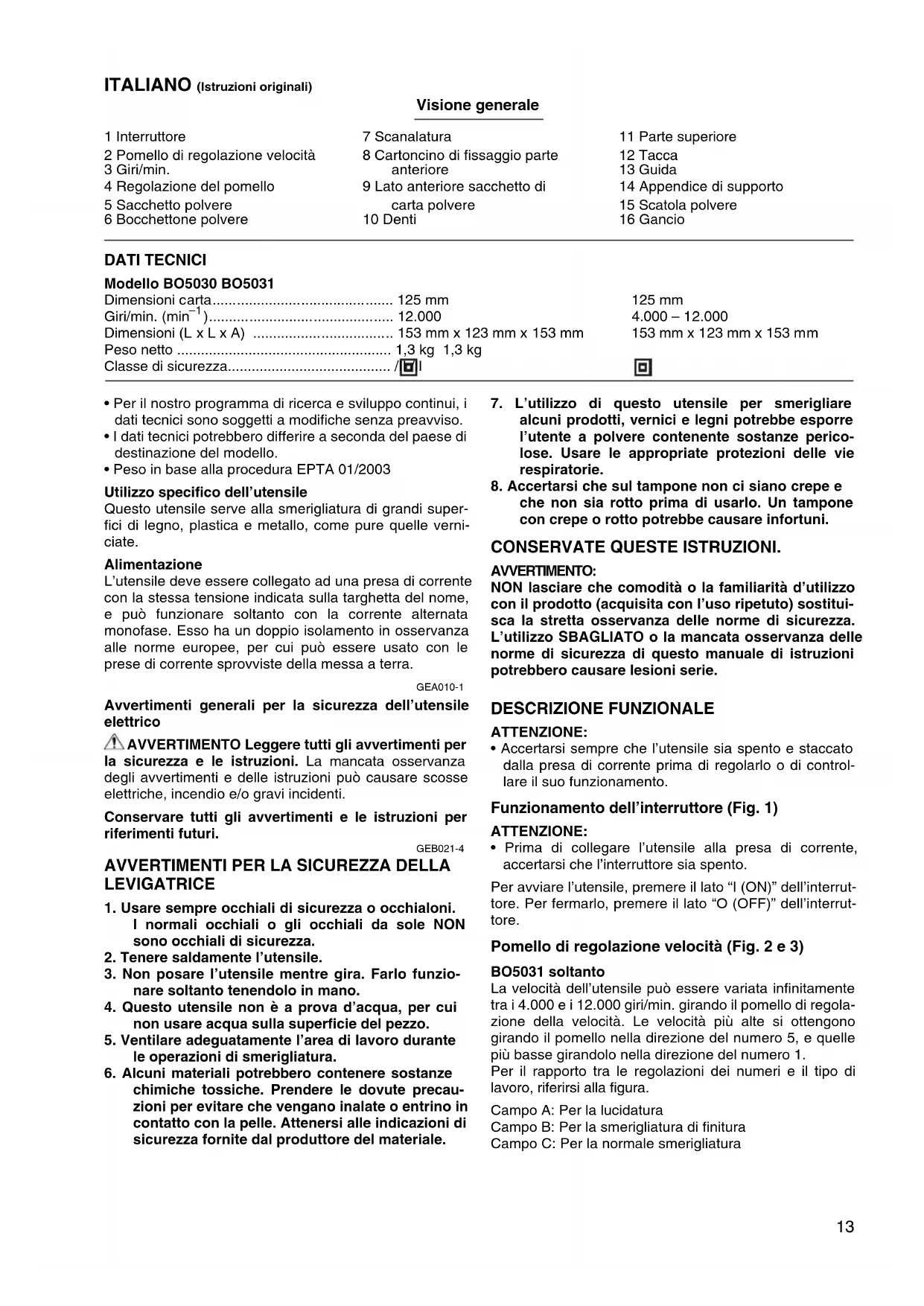 MANUALE UTENTE BO5030 MAKITA