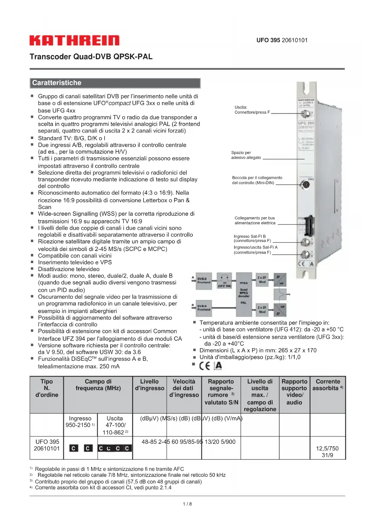 Trova gratuitamente il manuale del dispositivo UFO 395 KATHREIN in formato PDF.