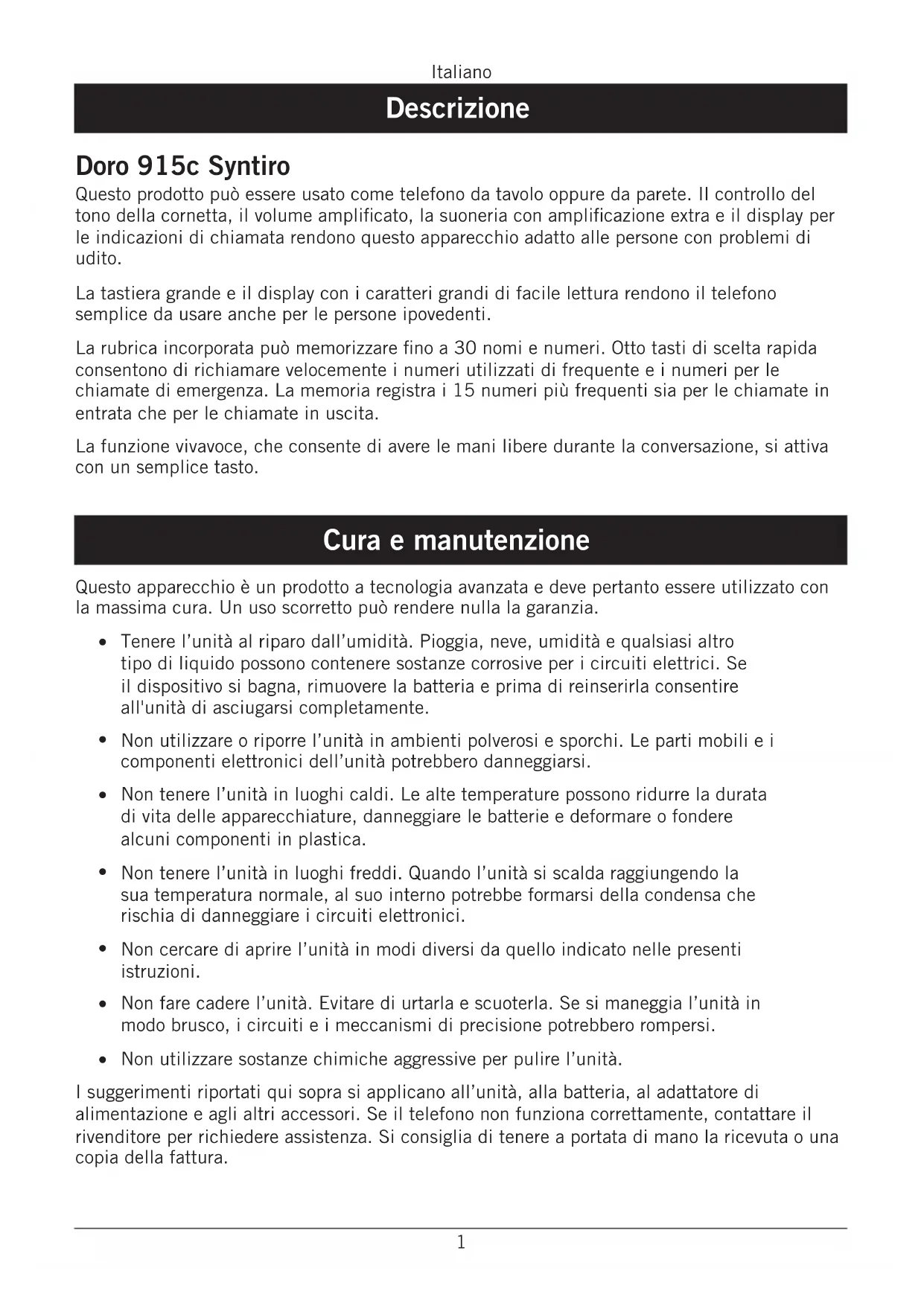MANUALE UTENTE Syntiro 915c DORO