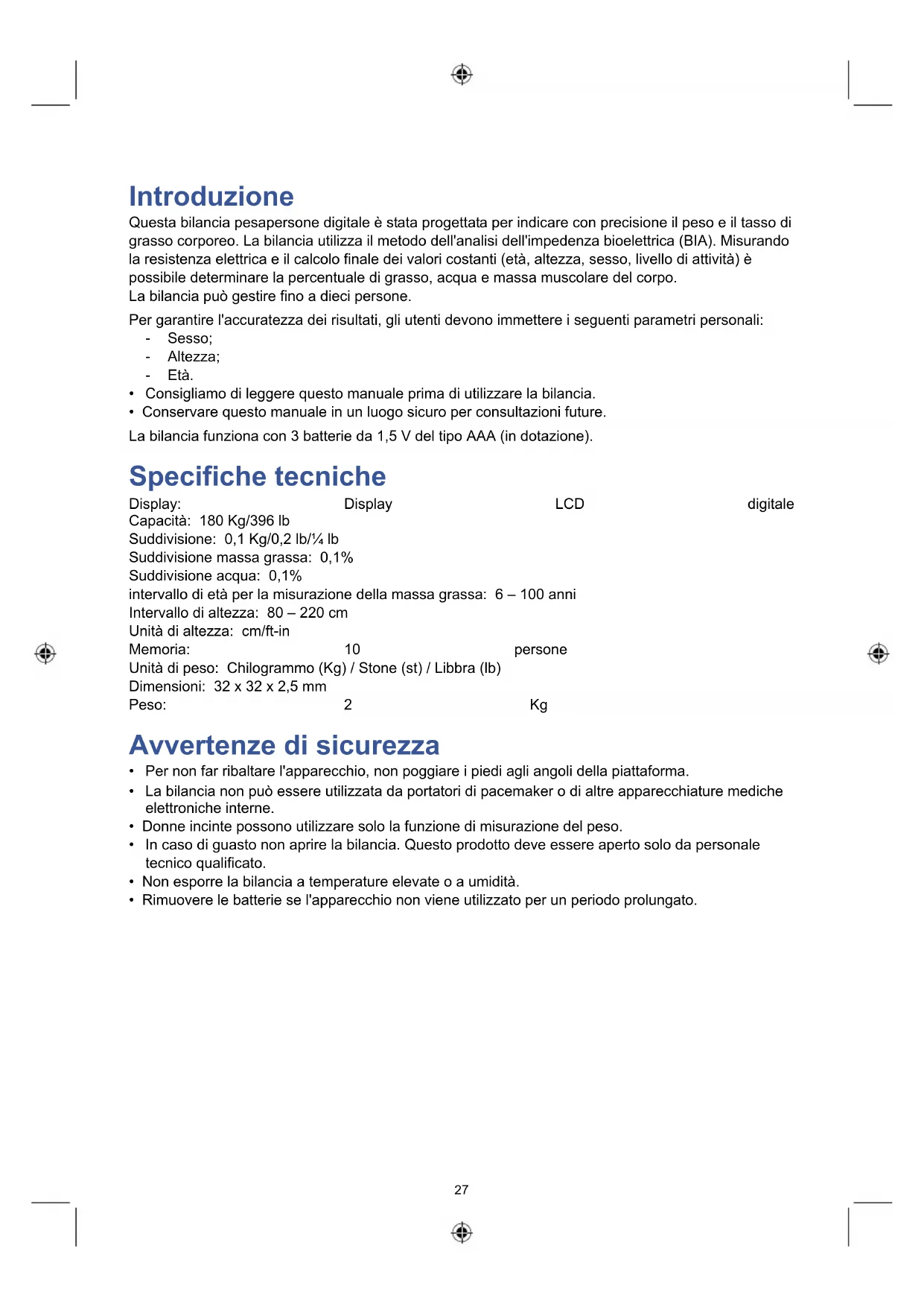 - Donne incinte possono utilizzare solo la funzione di misurazione del peso.