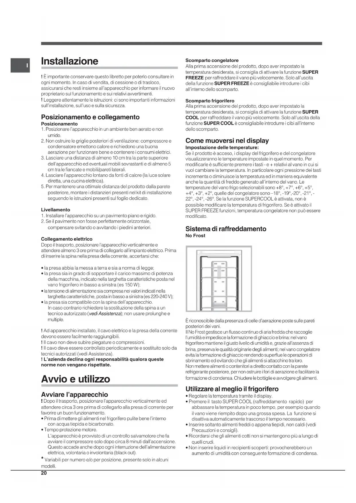brina, preserva le qualità originarie degli alimenti; nel vano congelatore