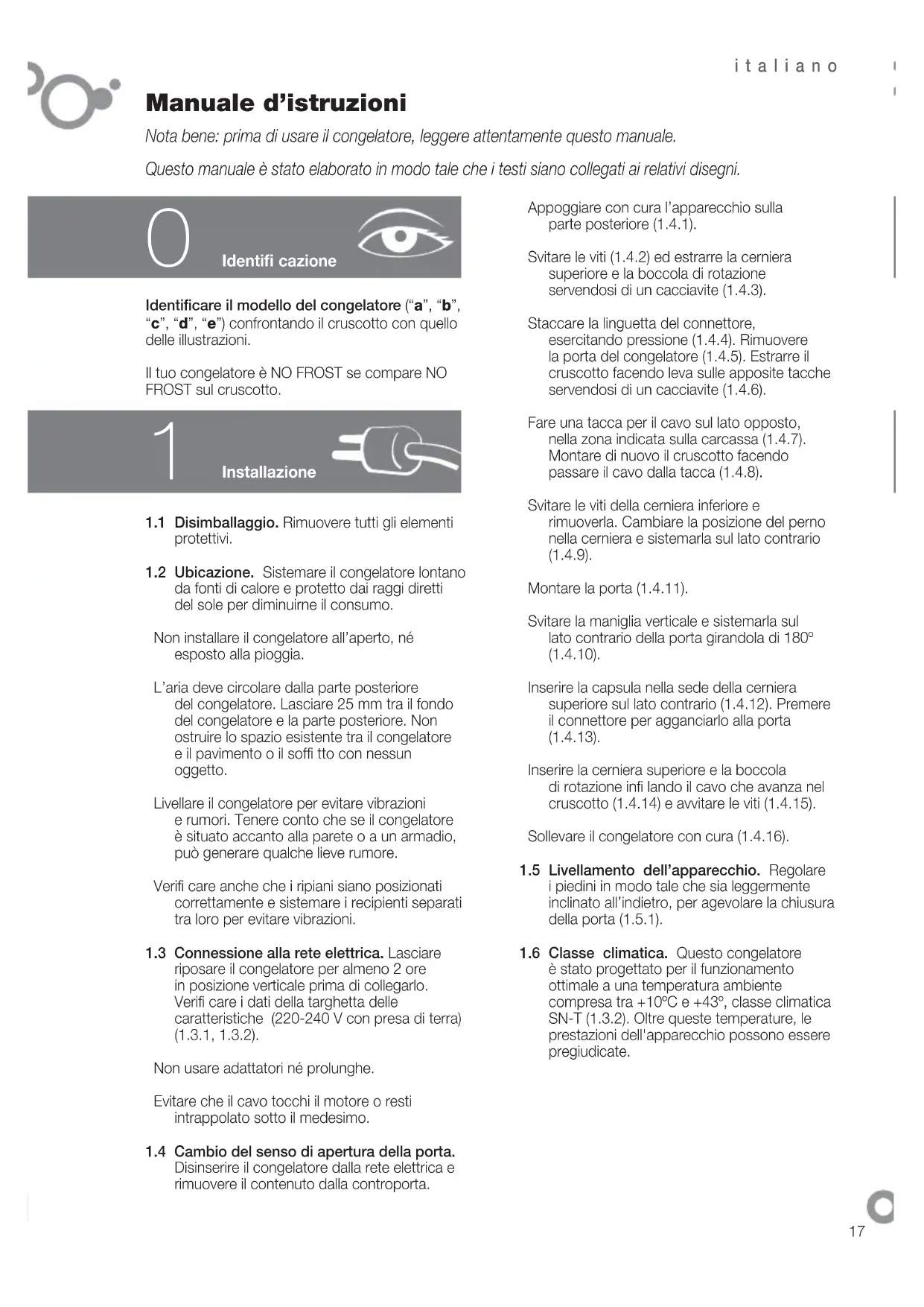 Nota bene: prima di usare il congelatore, leggere attentamente questo manuale.