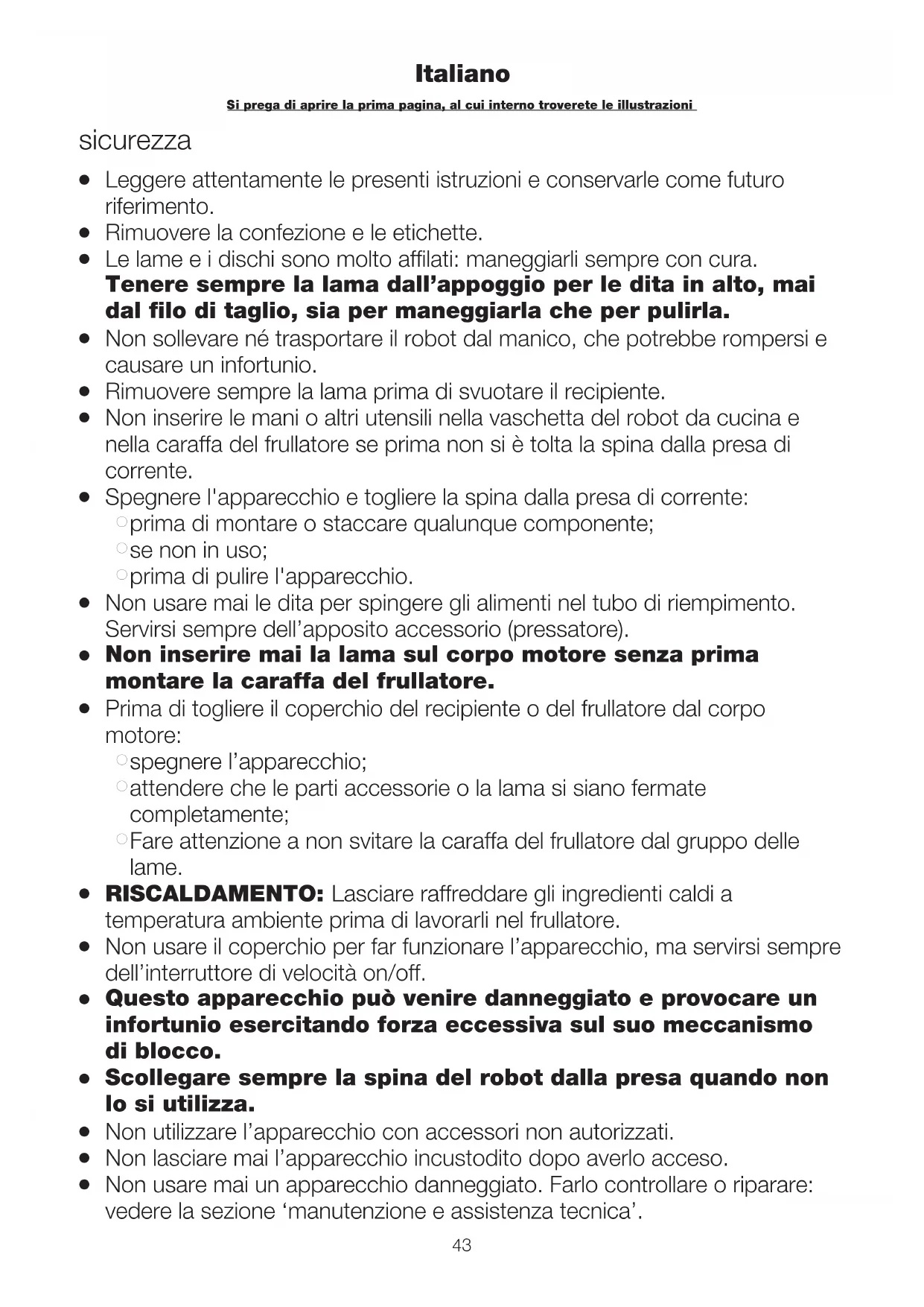 G Non inserire le mani o altri utensili nella vaschetta del robot da cucina e