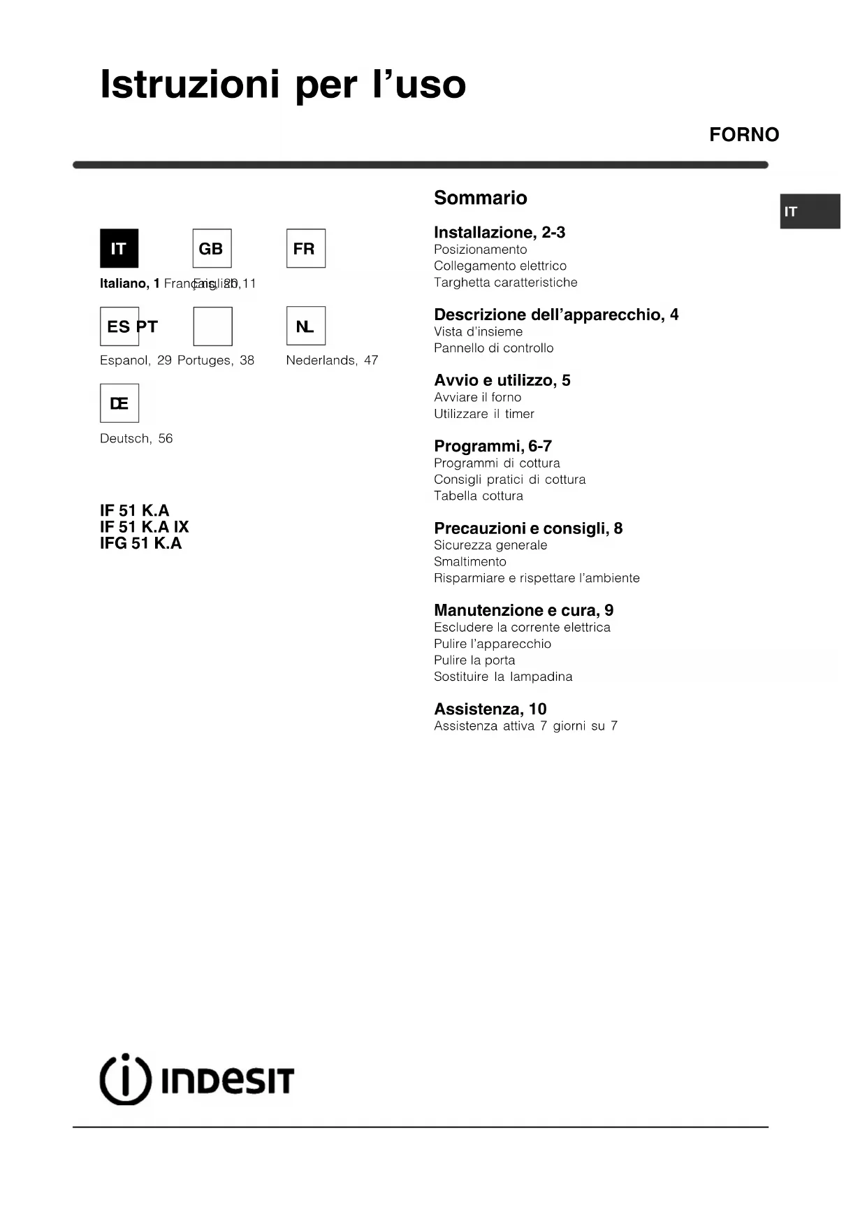 consultare il sito www.indesit.com.IF 51 K.A IF 51 K.A IX IFG 51 K.A KZ.O.02.0361
