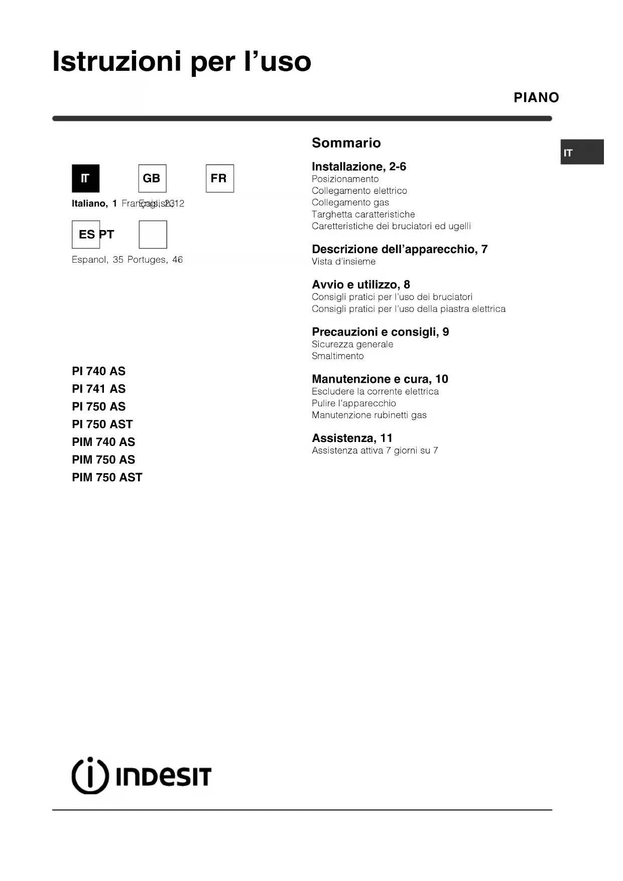 Trova gratuitamente il manuale del dispositivo PIM 750 AS (IX) INDESIT in formato PDF.