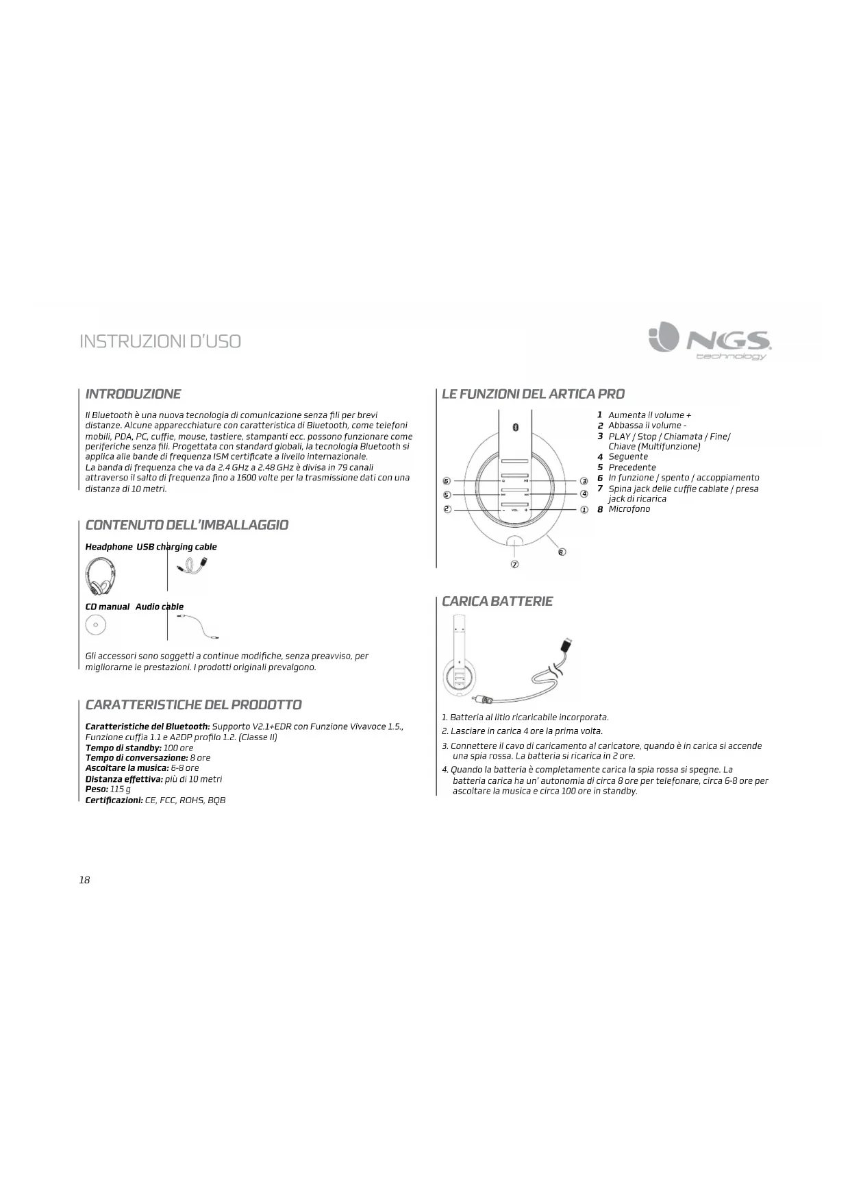 MANUALE UTENTE White Artica Pro bluetooth NGS