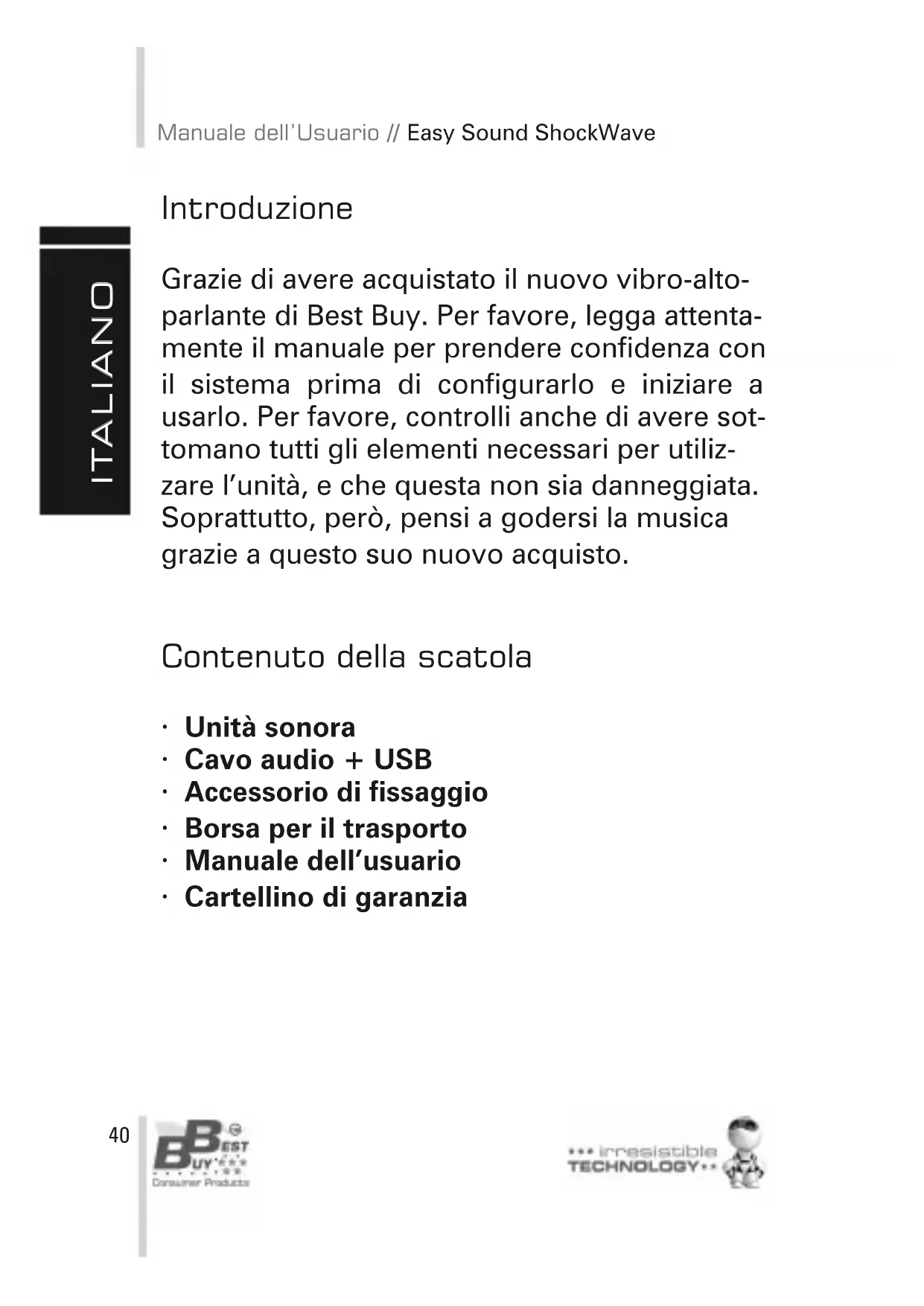 MANUALE UTENTE Easy Sound Shockwave Best Buy