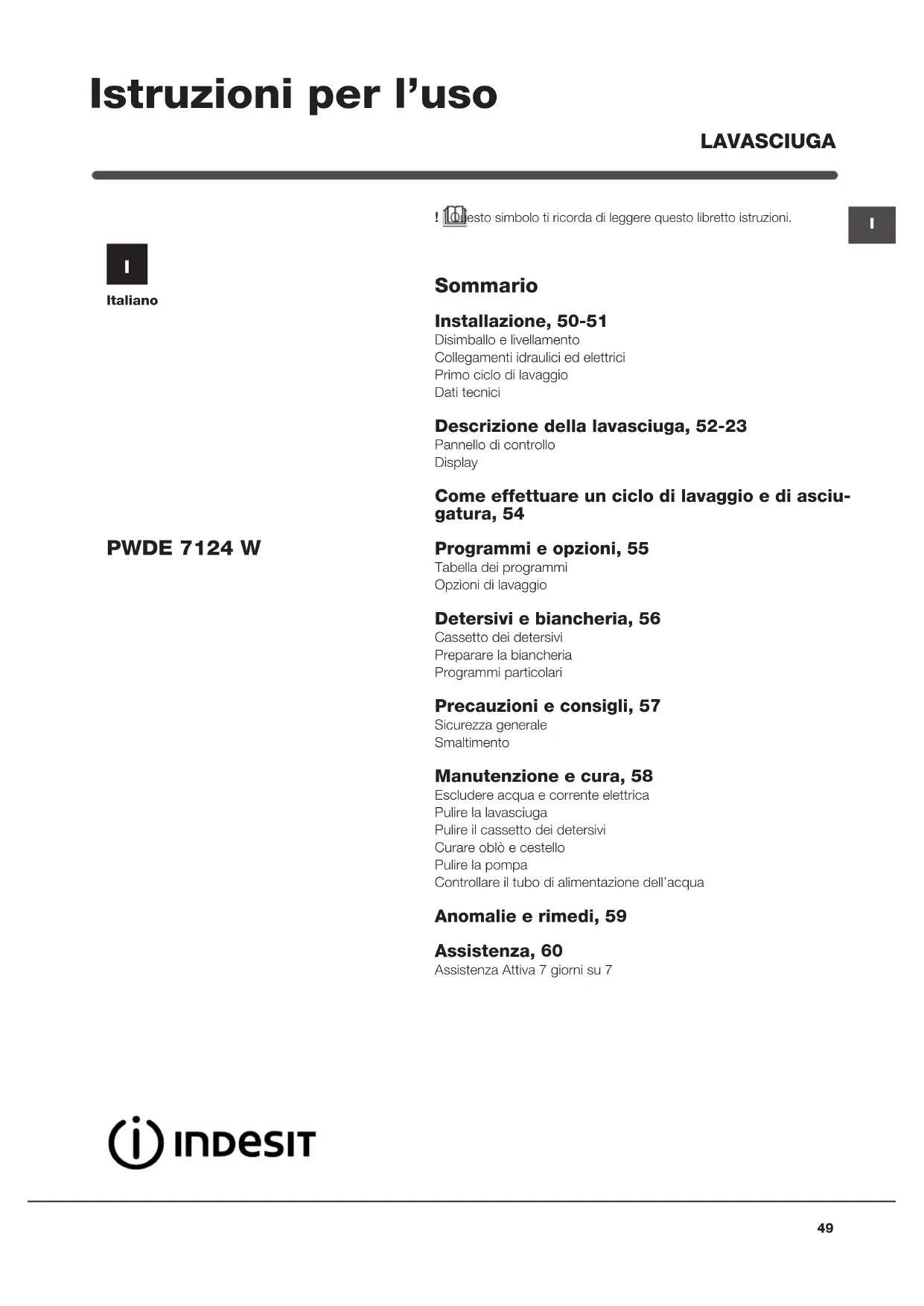 PWDE 7124 S - Lavatrice INDESIT - Manuale utente e istruzioni gratuiti