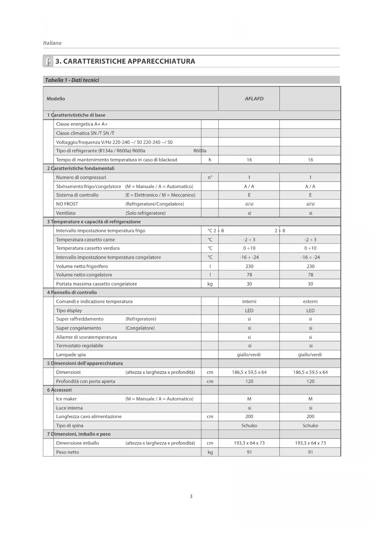 Tabella 1 - Dati tecnici3