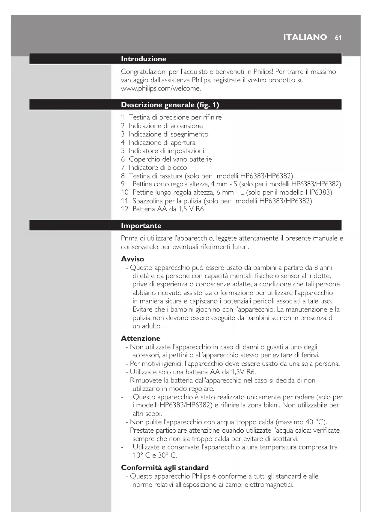 i modelli HP6383/HP6382) e rinire la zona bikini. Non utilizzabile per