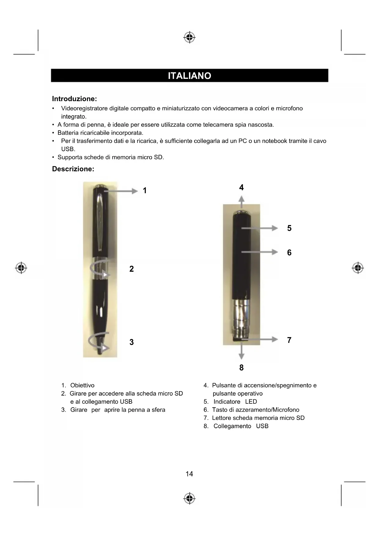 - A forma di penna, è ideale per essere utilizzata come telecamera spia nascosta.